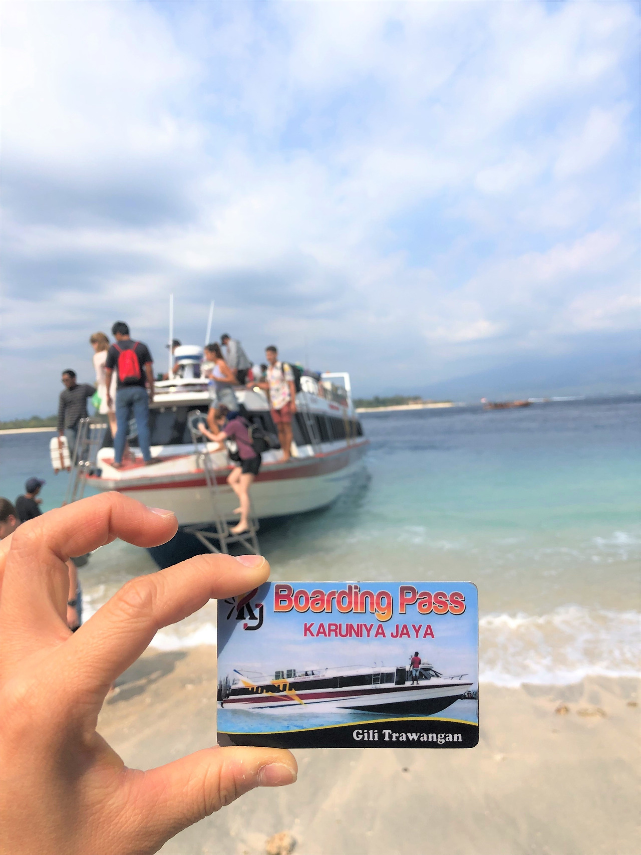 그리고 나는 도미니크에게 왓챕으로 연락을 해서, 티켓 가격과 일정에 대해 말해줬다. 그녀도 예약하겠다고 했다. 6시 30분은 너무 이르니, 10시 30분에 출발하기로 했다. 나는 바로 그 박스로 가서 예약을 했다. 버스와 페리 패키지를 파는 투어 회사가 많다. 나는 그중 ‘KARUNIYA JAYA’를 이용했다. 파당바이와 길리 T에는 오피스가 바로 항구 근처에 있다.