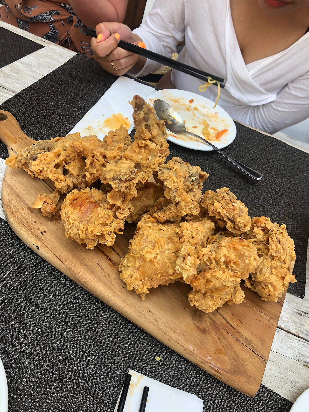 게다가 선샤인 다이브는 카페도 함께 운영하는데, 한국음식도 판다. 인도네시아에서 처음이자 마지막으로 먹은 한국 음식이었다. 그리워서 먹었기보다는 외국 친구들에게 맛을 알려주고 싶어서 먹었었다. 별 기대 안 하고 주문한 양념치킨과 김치볶음밥, 라면, 볶음면 모두 다 맛있었다. 눌과 도미랑도 함께 먹었는데 이미 한국 음식을 경험해본 눌도 좋아했고, 처음 먹어본 도미도 만족해했다. 도미는 여기서 내게 젓가락질하는 법도 배웠다.
