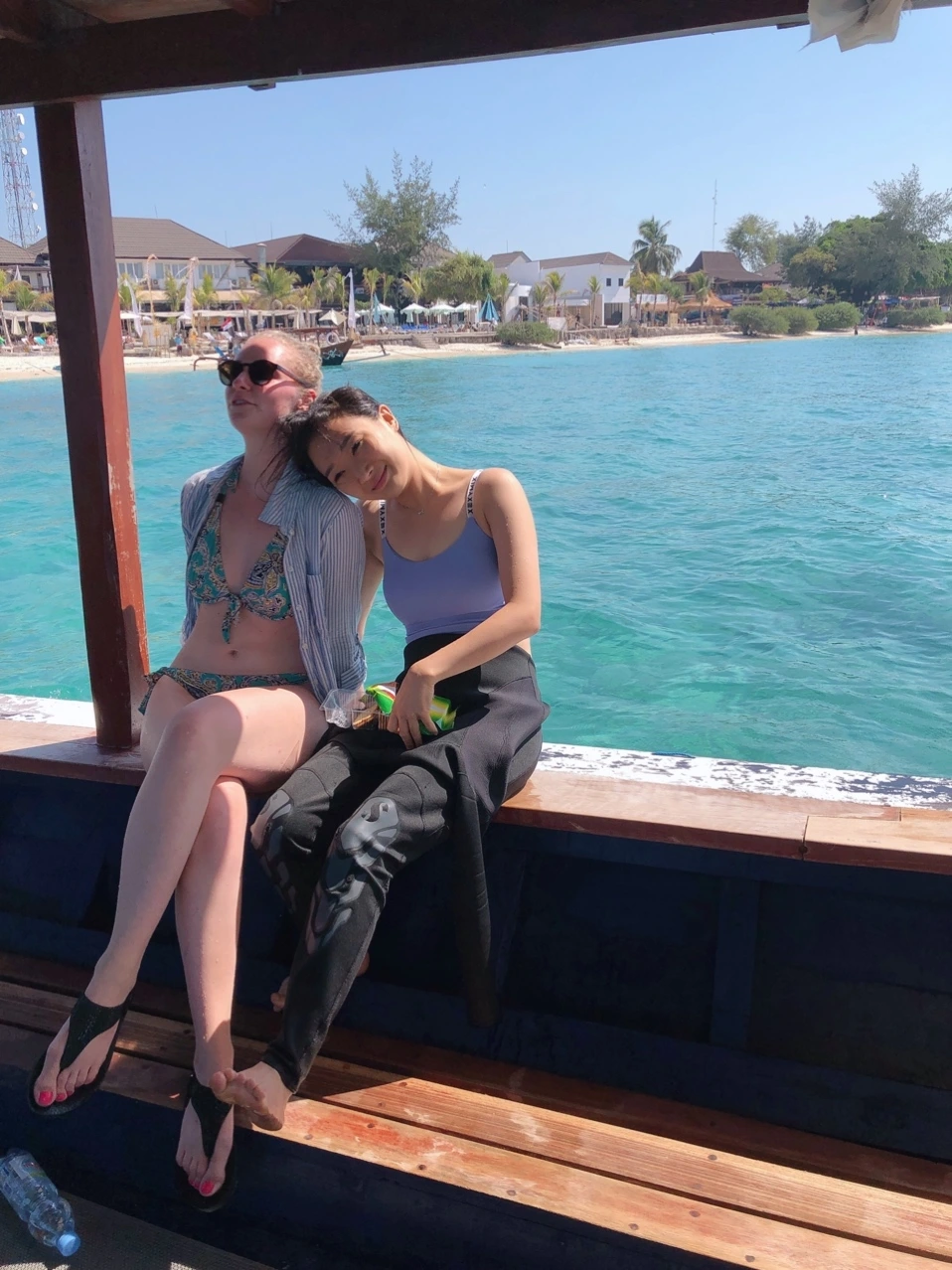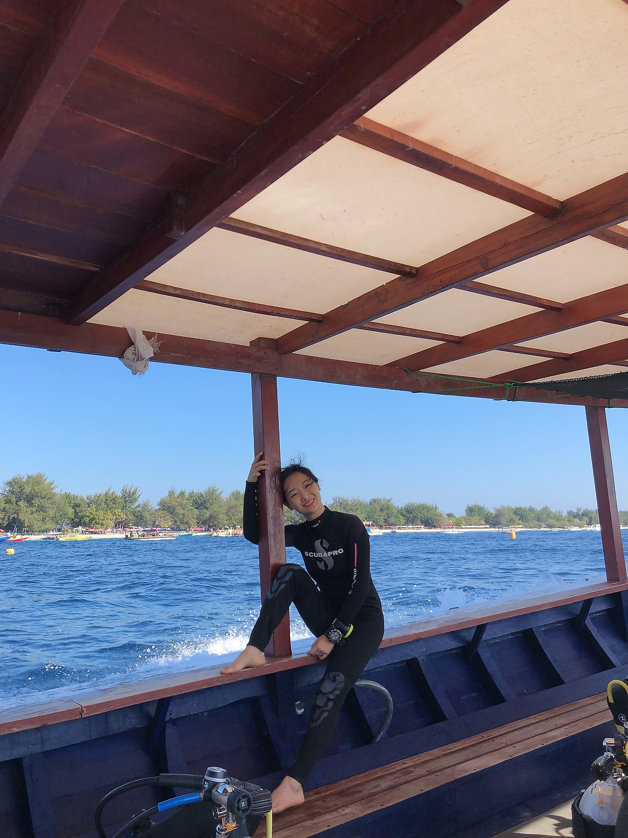 무엇보다도 선샤인 다이브는 탁월한 선택이었다. 길리 트라왕안에는 다이브 샵이 많다. 그중 선샤인 다이브만이 한국인이 운영하는 유일한 샵이다. 그래서 나는 안전과 직결된 것이라 영어보다 한국어로 배우는 것이 더 날 것이라고 생각했다. 더 나은 시설이나 서비스를 기대하고 선택한 것은 아니었다. 그러나 모든 것이 기대 이상이었다. 모든 강사님들이 친절하시고, 하나하나 꼼꼼하게 잘 챙겨주셨다. 게다가 다른 다이브 샵들의 배를 바다에서 만날 수 있었는데, 소수로 진행되는 선샤인 다이브와는 달리 다른 배에는 사람들이 우글우글했다. 도미도 여기저기에서 펀 다이브를 알아보다가 생각보다 가격이 비싸서 고민하고 있었는데, 선샤인 다이브가 다른 샵보다 저렴하다는 것을 알고 나와 함께 바다로 나갔다. 영어를 하시는 강사님들이 계셔서 외국인도 하기에 전혀 문제가 없었다. 도미도 강사님들이 너무 잘해주신다고 좋아했다. 게다가 스놀 쿨링 장비도 빌려주셔서, 내가 2번째 로그를 할 때 도미는 스놀 쿨링을 하며 바다를 구경했다.