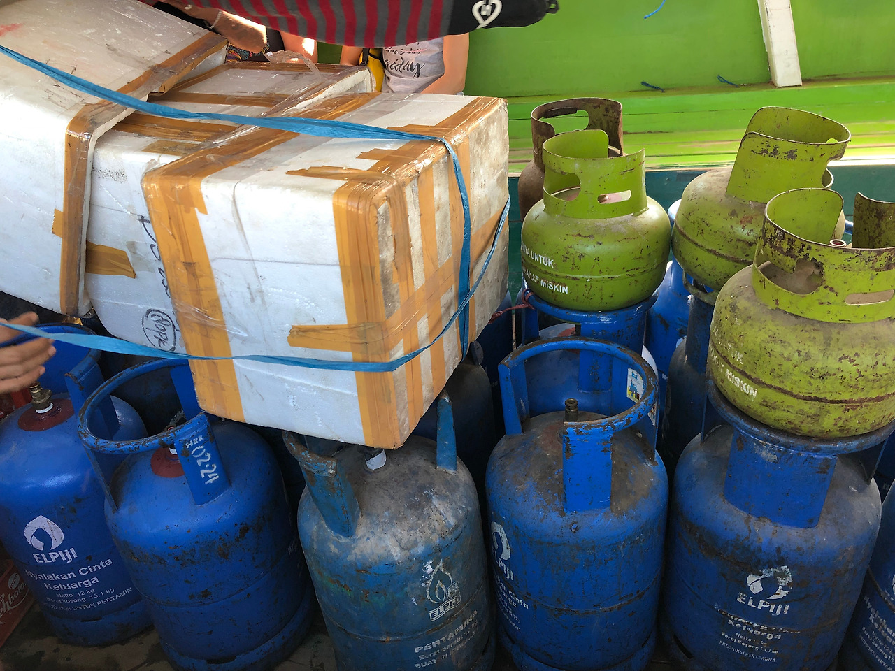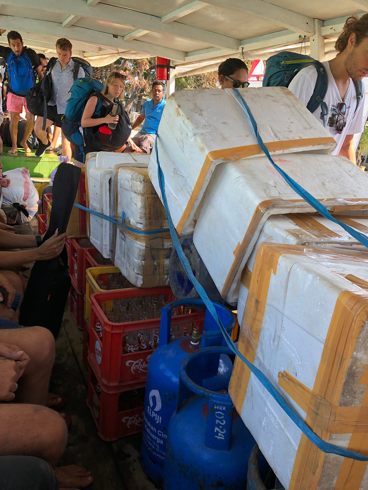 롬복행 보트 한가운데는 온갖 물건들이 산적해있었다.