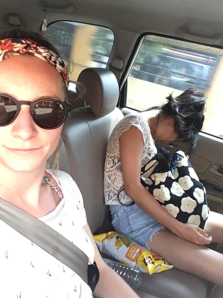 눈을 뜨니 산골 자기를 굽이 굽이 올라가고 있었다. 신선한 공기를 마시고 싶어서 창문을 내리자마자 원숭이와 눈을 마주쳤다. 도로 가장자리에는 산에서 내려온 원숭이들이 많았다.