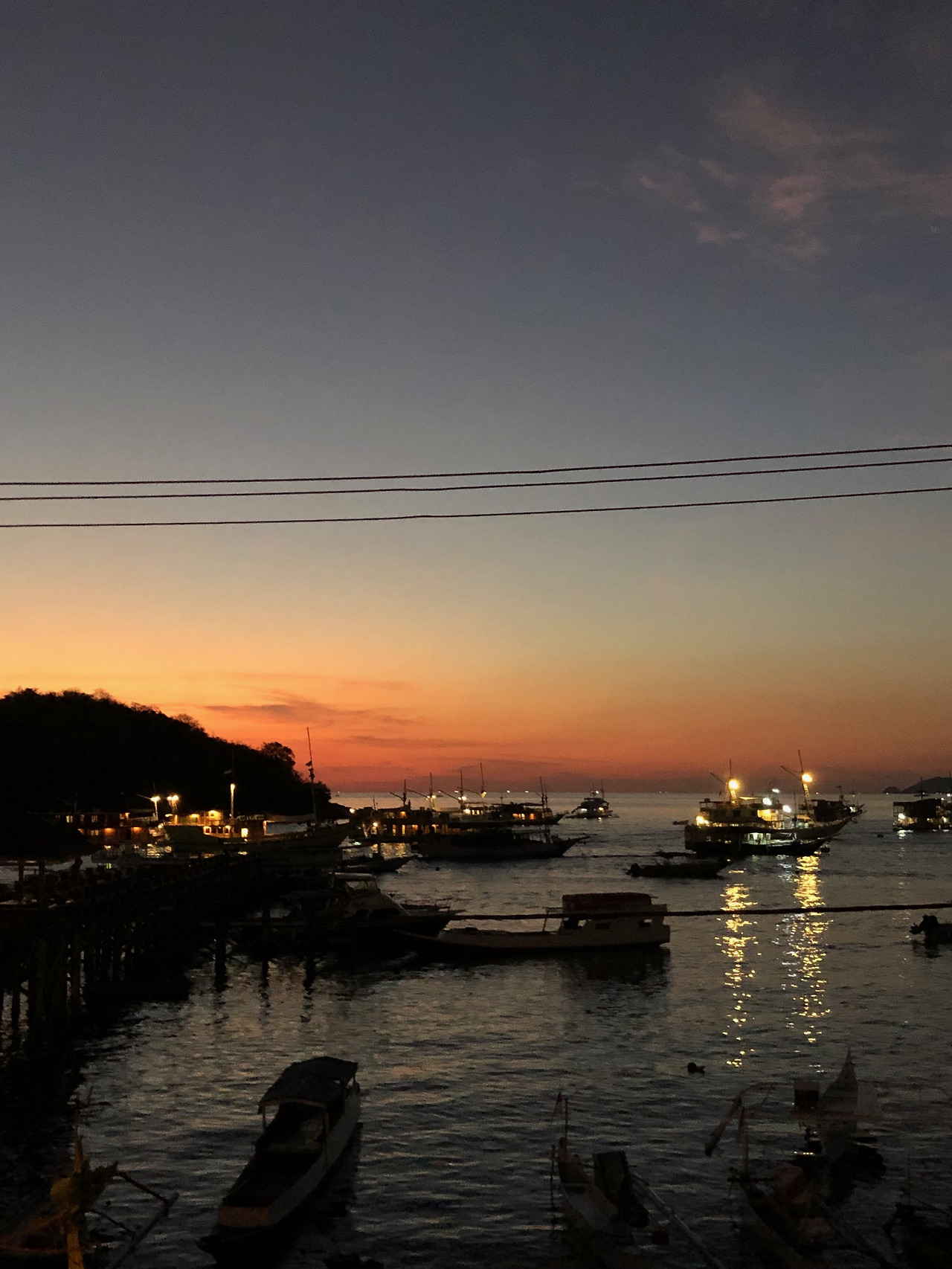 우리는 항구를 보며 식사를 할 수 있는 레스토랑으로 향했다. 가는 길에 노을이 우리를 기다리고 있었다. 길리에서 그렇게 열심히 자전거 페달을 밟으며 찾아다녔던 노을. 항구에 마중 나와 있었다. 식당에 도착해 밥을 먹으려고 앉으니, 노을이 창문 너머에 걸려 있었다. 우리는 노을을 안주 삼아 음식을 나오기 전에 삔땅을 마셨다.