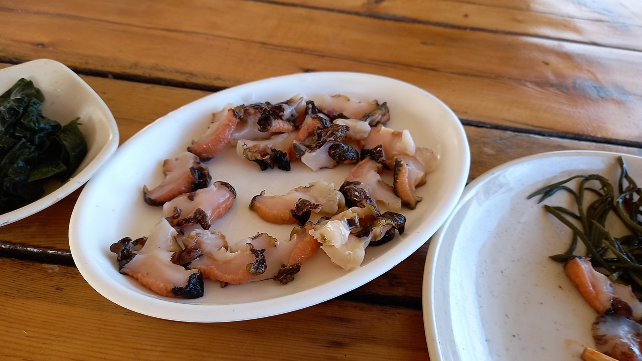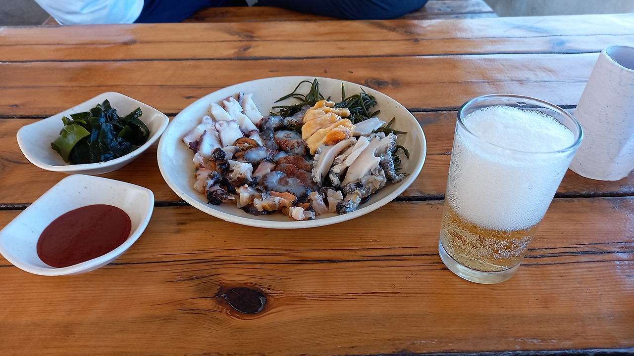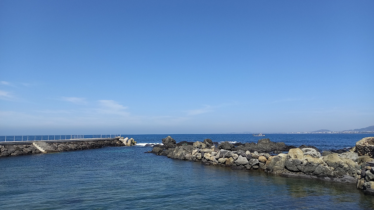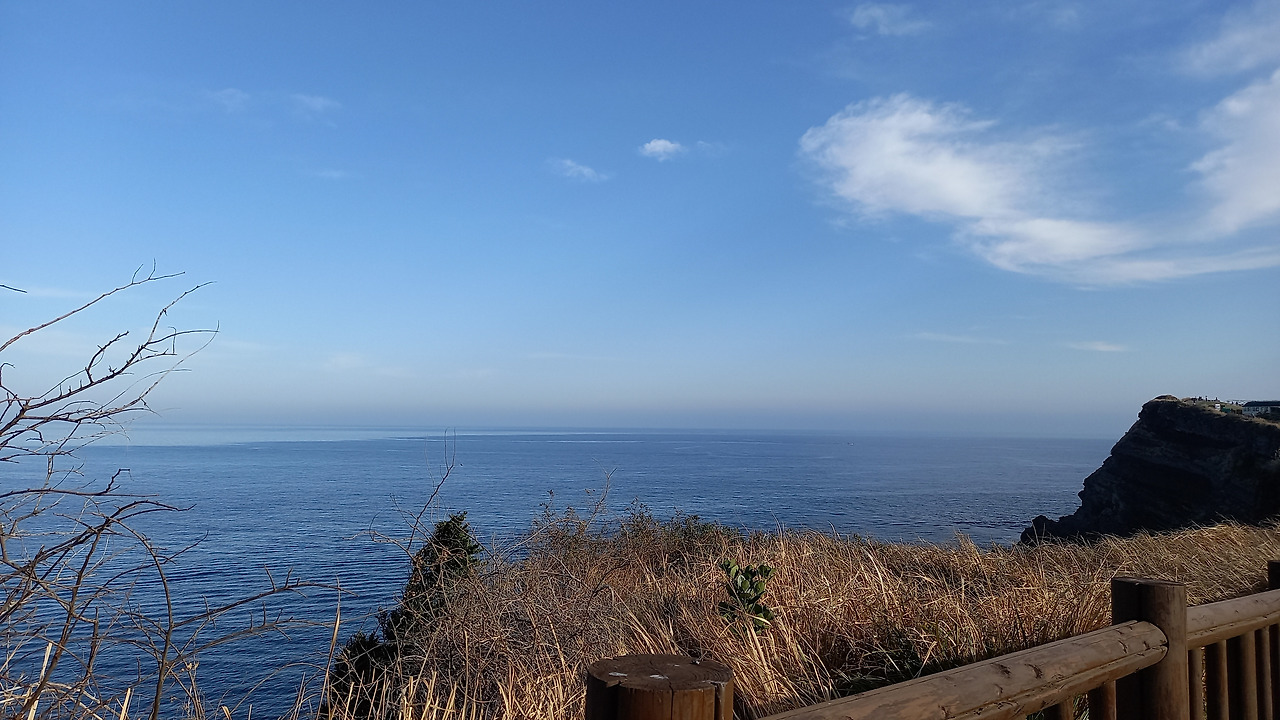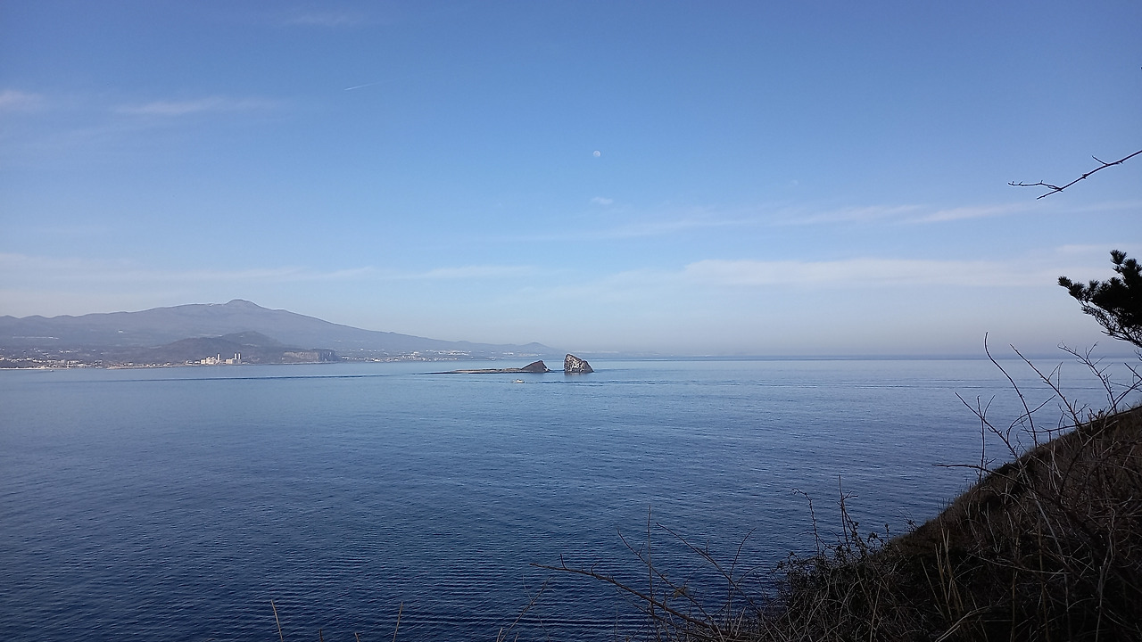송악산 둘레길을 걸었다. 걷기 전에 해녀의 집에서 해물 한 접시를 하려는데, 일행과 함께 온 현지 아저씨 한 분이 말을 걸었다. 얼마간 각자의 테이블에 앉아 몇 마디를 나눴는데 나중에 소라 한 접시를 사주신다. ‘손님, 저쪽 테이블의 신사분께서 드리는 겁니다.’같은 로맨틱한 맨트 대신 해녀 아주머니가 접시를 툭 놓고 가시면서 ‘저짝 삼춘이 주능거마씨. 맛나게 듭서.’ 하시면서 찡긋 웃으셨다. 혼자 여행 다니다 보니 이런 재미도 있다.