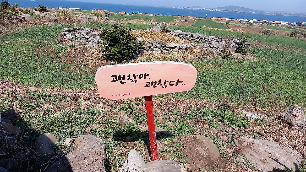 가파도로 들어가는 배를 탔는데, 핸드폰이 없었다. 또 핸드폰을 잃어버린 줄 알고 얼른 배에서 내려 헐레벌떡 되돌아와보니 렌터카 안에 얌전히 있던 핸드폰. 너무 좋아서 ‘아, 다행이다. 여기 있다!’ 하고 소리를 질렀는데, 옆 벤치에 앉아 쉬던 아저씨들이 웃으면서 고개를 끄덕끄덕, 깊은 공감과 응원을 눈빛으로 건네주신다. 이거 참, 감사합니다. 다시 숨차도록 뛰어서 출발 2분 전에 배에 올라탔다.