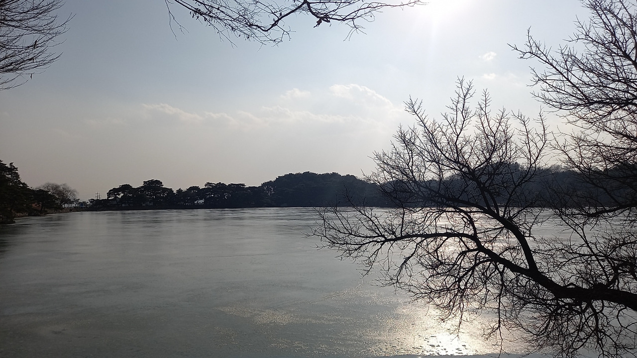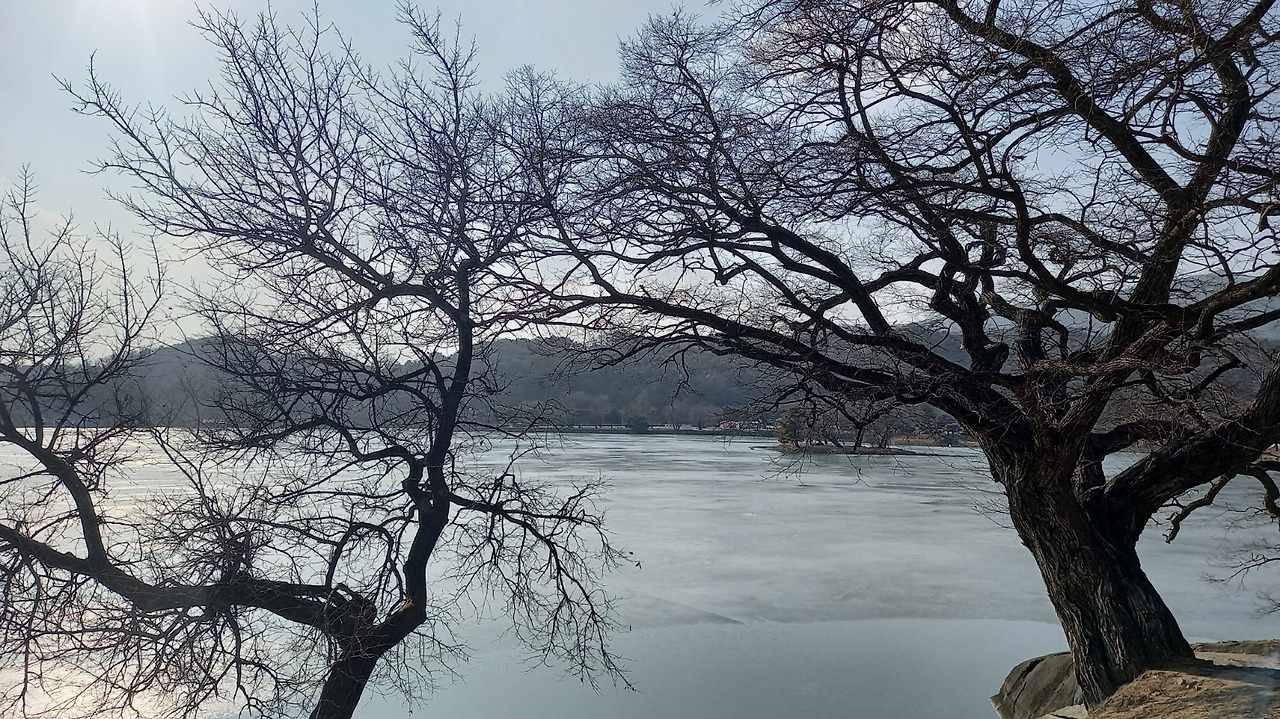 아직 나무는 새잎이 나지 않았고, 겨울이 지나가려는 호수는 군데군데 살얼음이 남았다.