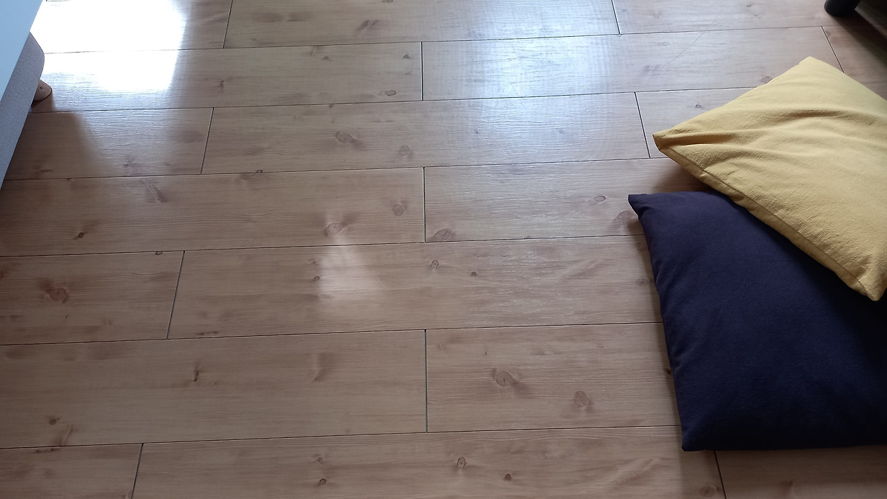 겨우내 깔아 두었던 러그를 얼마 전에야 치워서 맨 바닥이 드러났다.