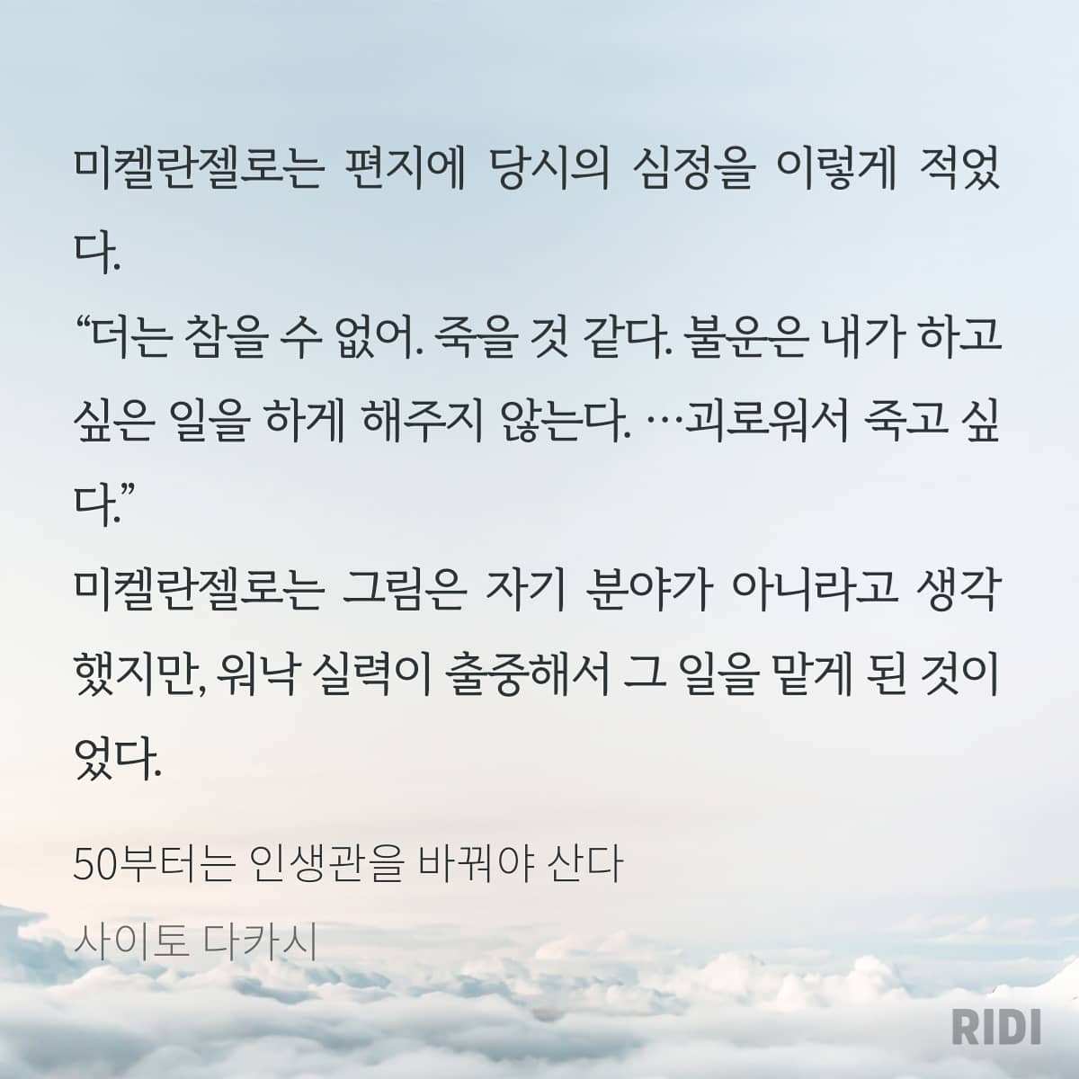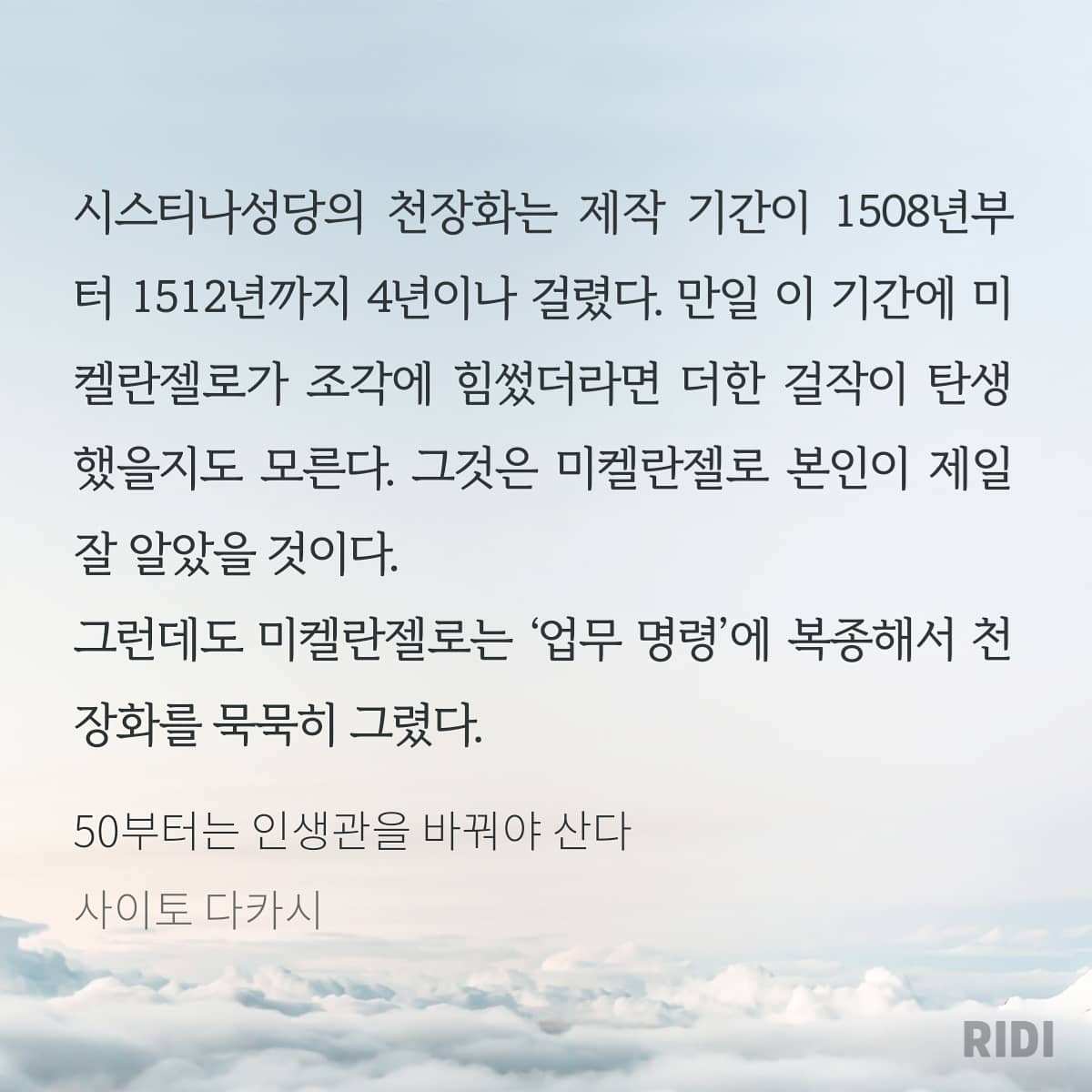 어차피 피할 수 없는 일이라면 미켈란젤로처럼 주어진 상황에서 최선을 다해야 할 것 같습니다.