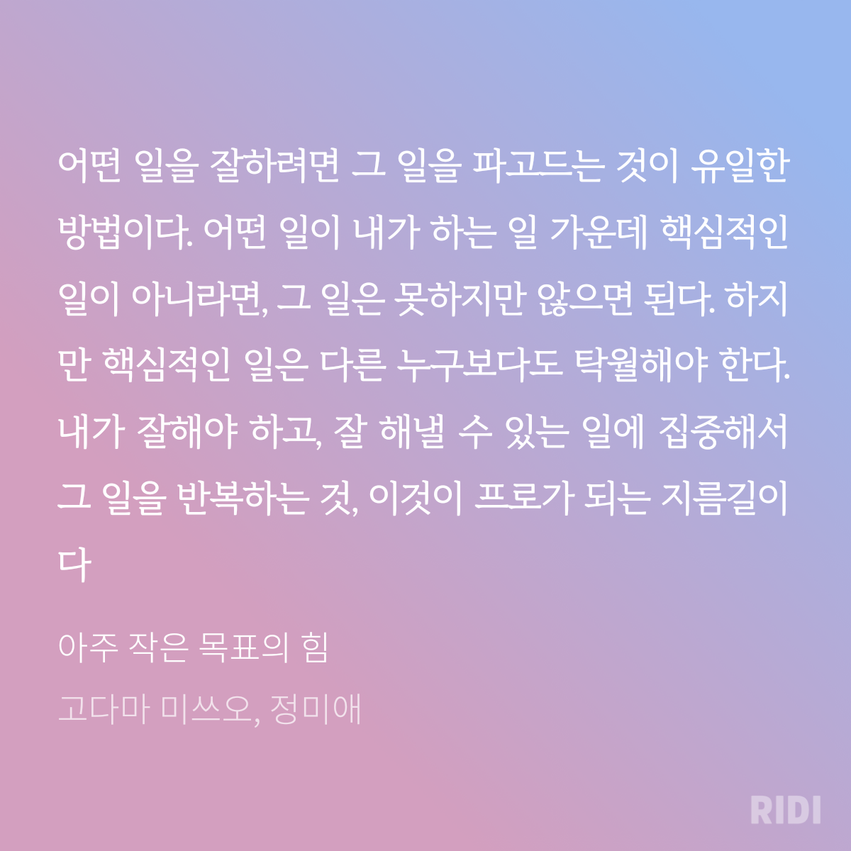 성공하는 사람은 한 가지 일에 집요하게 집중합니다. 매일 꾸준히 자신이 할 일을 찾아서 그 일을 합니다.