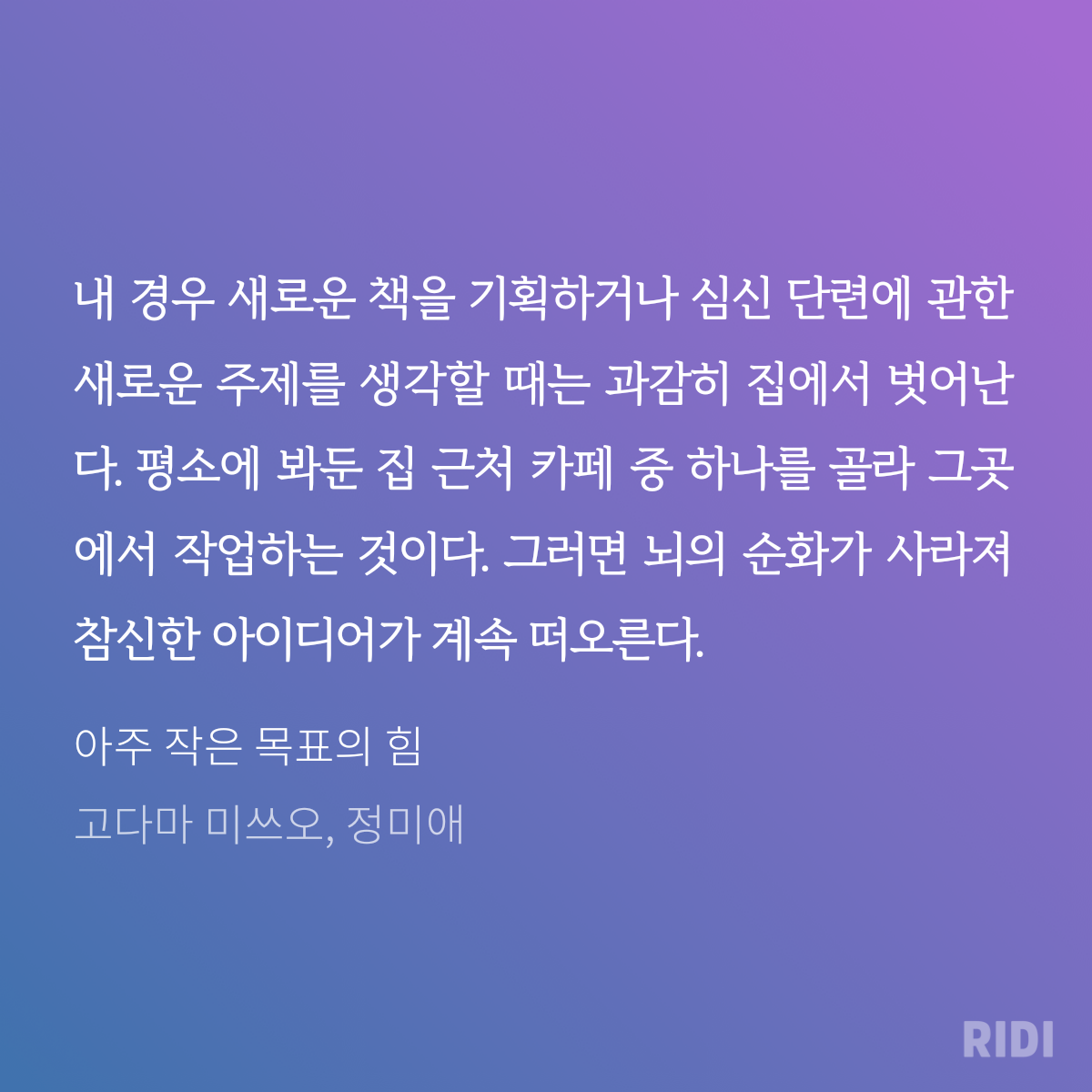 이렇게 장소와 시간을 달리하고, 새로운 사람들을 만나는 것도 도움이 됩니다. 앞서 언급했듯이 책을 쓴다면 작가, 편집자 또는 독서모임 등을 통해서 그 분야의 사람과 만나서 대화를 합니다. 이런 모임을 통해서 새로운 아이디어를 얻게 됩니다.