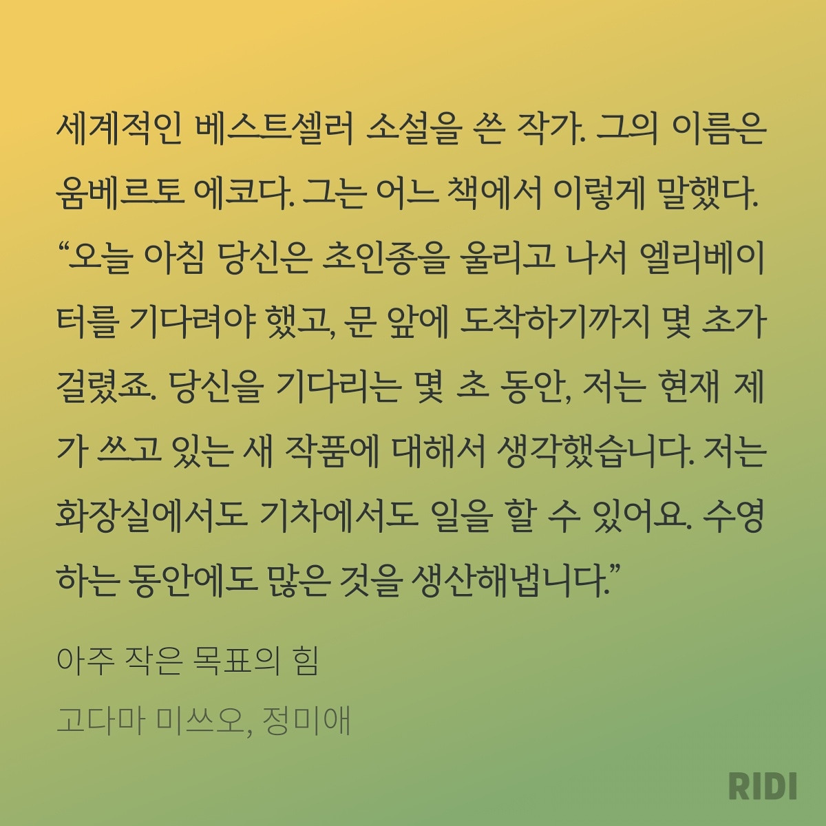 그렇게 한 가지에 몰입하다 보면 자투리 시간조차 흘리지 않습니다.