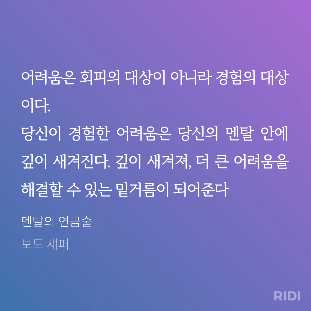 "어려움은 회피의 대상이 아니라 경험의 대상이다."
