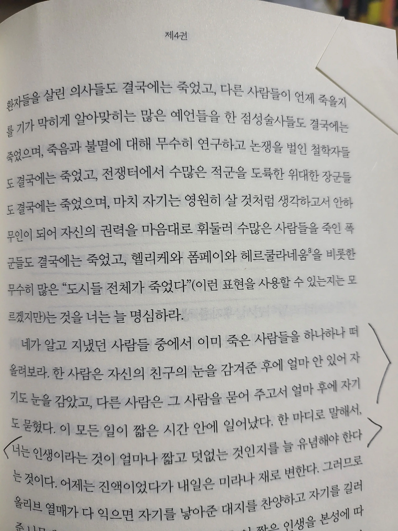 "마치 자기는 영원히 살 것처럼 생각하고서 안하무인이 되어 자신의 권력을 마음대로 휘둘러 수많은 사람들을 죽인 폭군들도 결국에는 죽었다." 《명상록》중에서