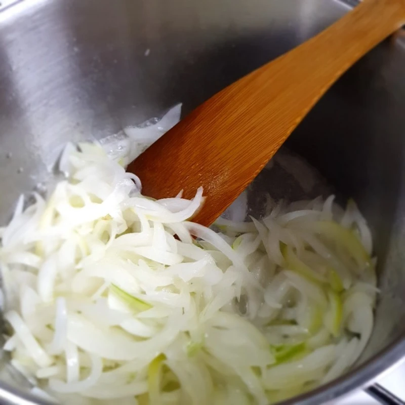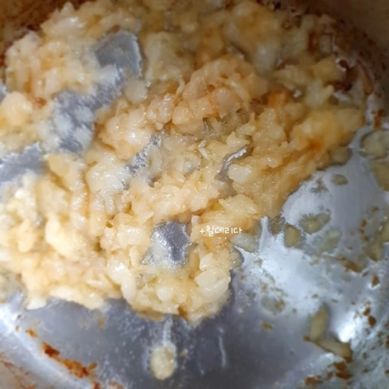 1. 양파를 수북이 썰어 소금 간을 한 꼬집 정도 하고 코코넛 오일을 충분히 둘러 갈색이 될 때까지 볶는다.