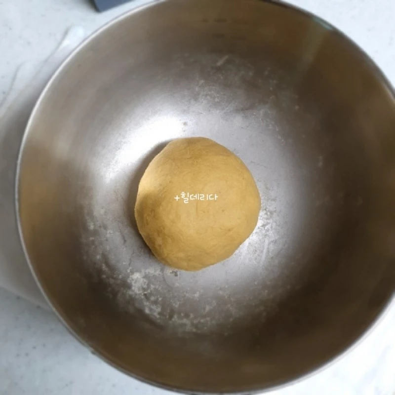 1. 으깬 고구마에 통밀가루를 섞어 말랑말랑하게 반죽한 후에 갭이나 그릇으로 덮어 40분~1시간 정도 숙성시킨다. (찐 고구마의 수분으로 물 없이 반죽할 수 있다.)