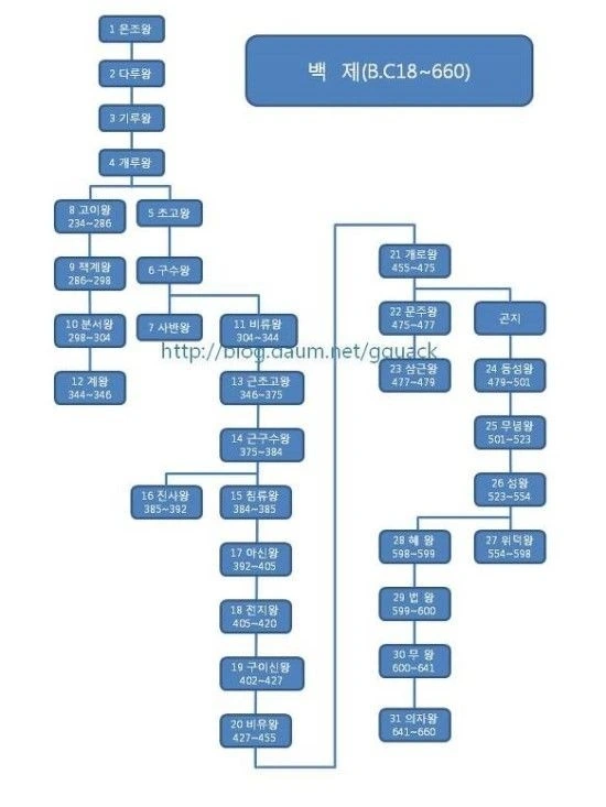 다음은 '삼국사기'에 나오는 백제 제1대부터 제7대까지 왕들이다. 간략히 살펴보겠다.
