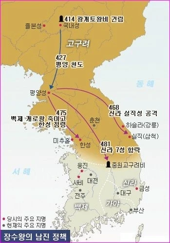 장수왕 천도와 남진정책으로 한반도 정세는 크게 요동쳤다.