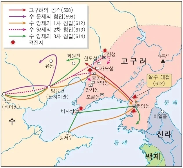 고구려와 수나라 사이에 벌어진 네 차례의 전쟁은 사실 고구려 선제공격에서부터 시작되었다. 서기 598년, 고구려 '영양왕'은 수나라 영향력이 요동지역으로 확대되는 것을 견제하기 위해 먼저 요서지역을 공격하였다.