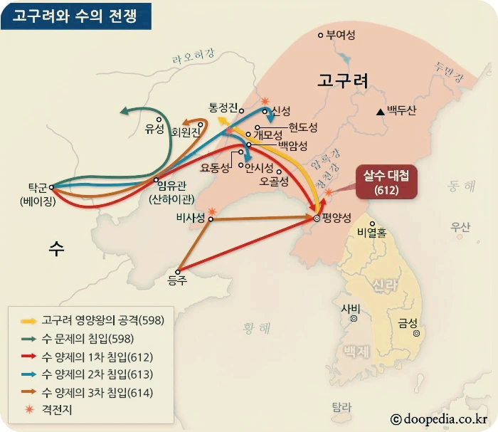 4차례에 걸친 수·고구려 전쟁은 양국에 막대한 인명·물자 손실을 남겼다. 그러나 고구려는 끝내 버텨냈고, 수나라는 결국 내부 붕괴로 사라졌다.