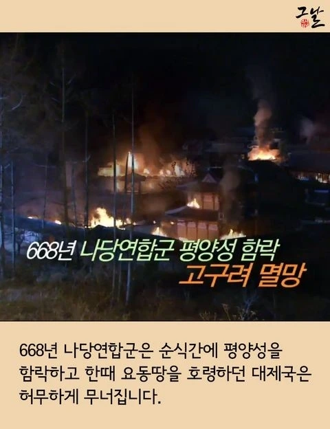 이로써 700년을 이어온 고구려는 668년, 나당연합군에 의해 역사 속으로 사라졌다.
