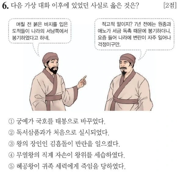 이 글을 몇 번 읽어도 답을 맞히기 어려울 것입니다. 힌트는 진성여왕 때 일어난 원종과 '애노의 난 7년 뒤'라는 것입니다.