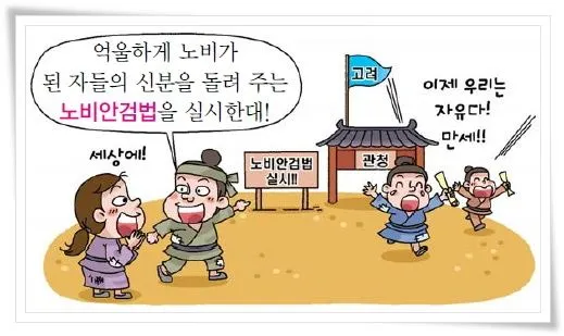 956년 실시된 '노비안검법'은 호족들이 불법적으로 노비로 만든 자들을 조사해 원래의 양인신분으로 되돌리는 정책이었다.