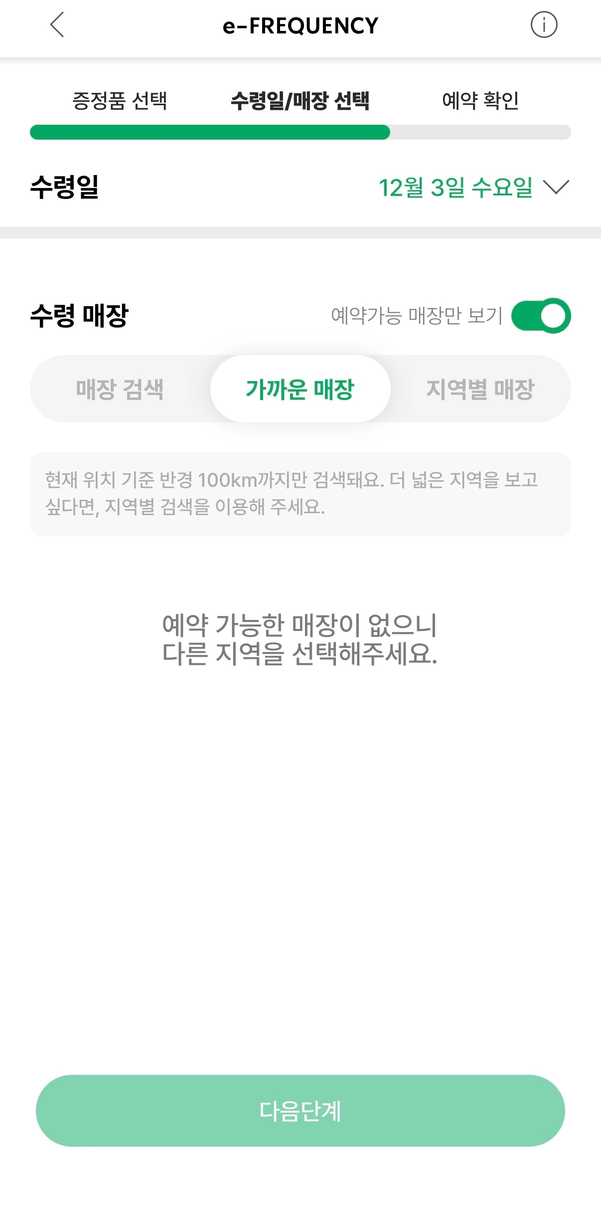 나의 희망 가득한 기대와는 달리, 12월 3일 수령가능한 매장은 없습니다.