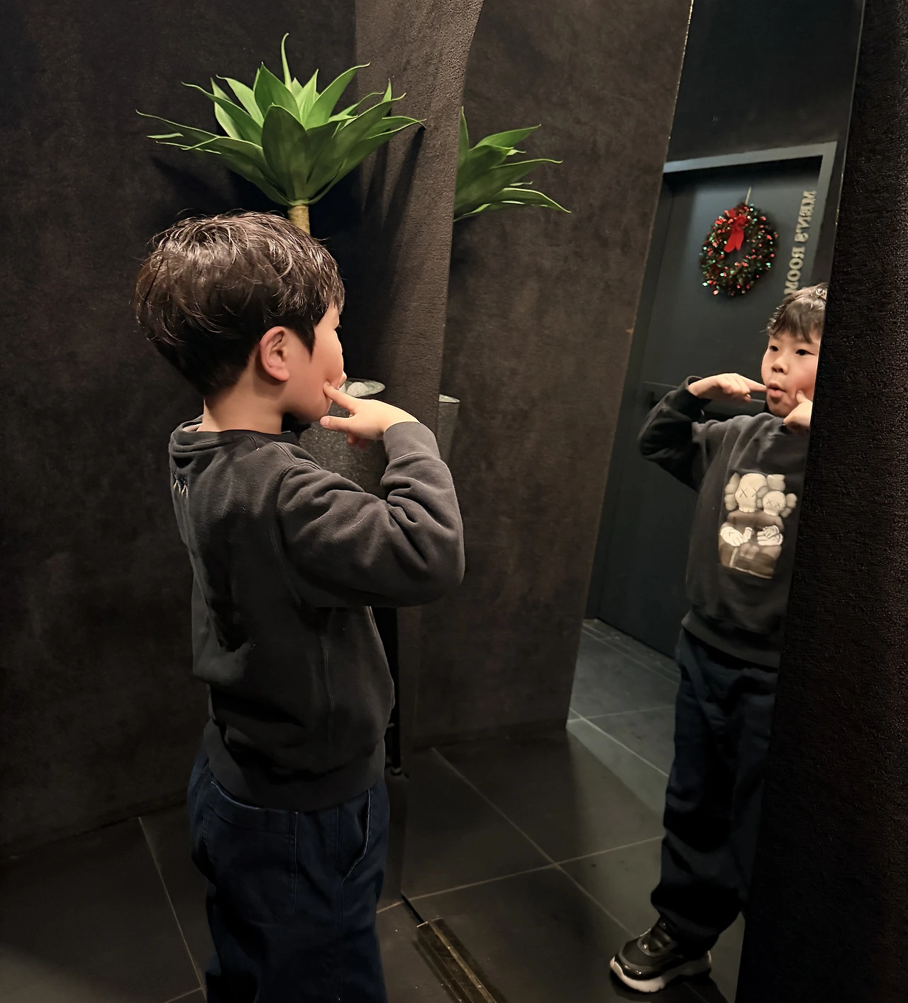 "아니, 여기 스타일 선생님이 이렇게 해주셨어! 초콩이가 뽀글뽀글은 너무 싫어하기도 하고, 일단 스타일을 같이 고르다가 요즘 초등 아이들은 쉐도우펌을 많이 한다고 해서"