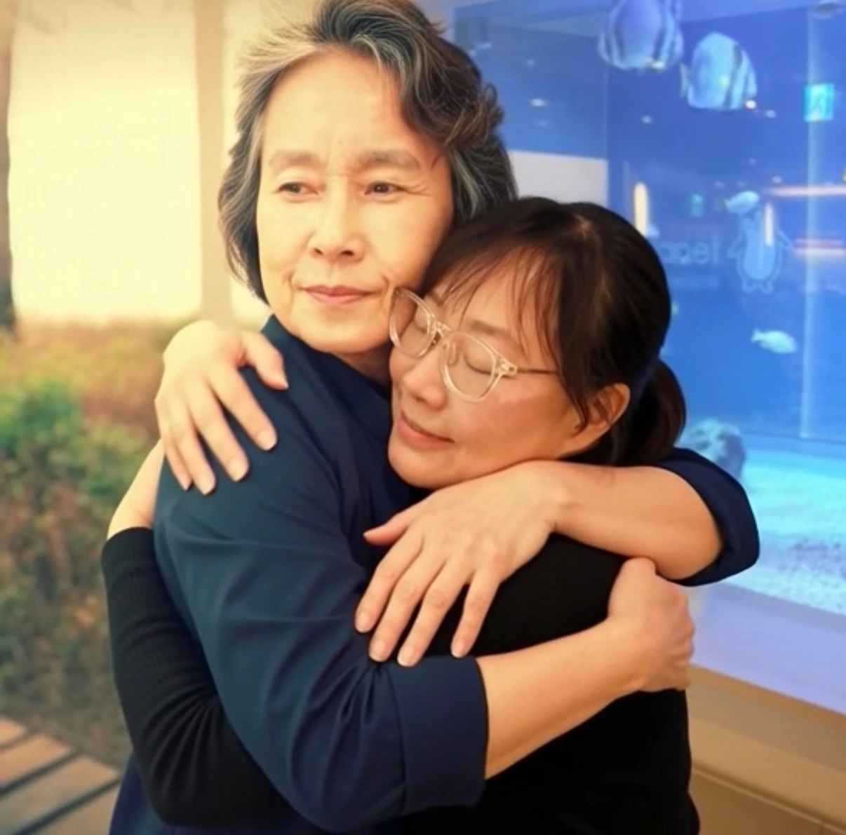나는 바로 엄마의 사진을 찾았고, 엄마가 혼자 나온 사진 한 장을 찾았고, 내 사진 중에서는 그나마 최근 제일 잘 나온 사지을 찾아서 바로 한 장으로 합쳤고, 둘을 서로 마주 보고 안아주는 영상으로 만들어 달라고 Grok 어플을 이용해서 만들었다.