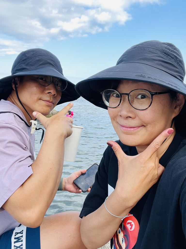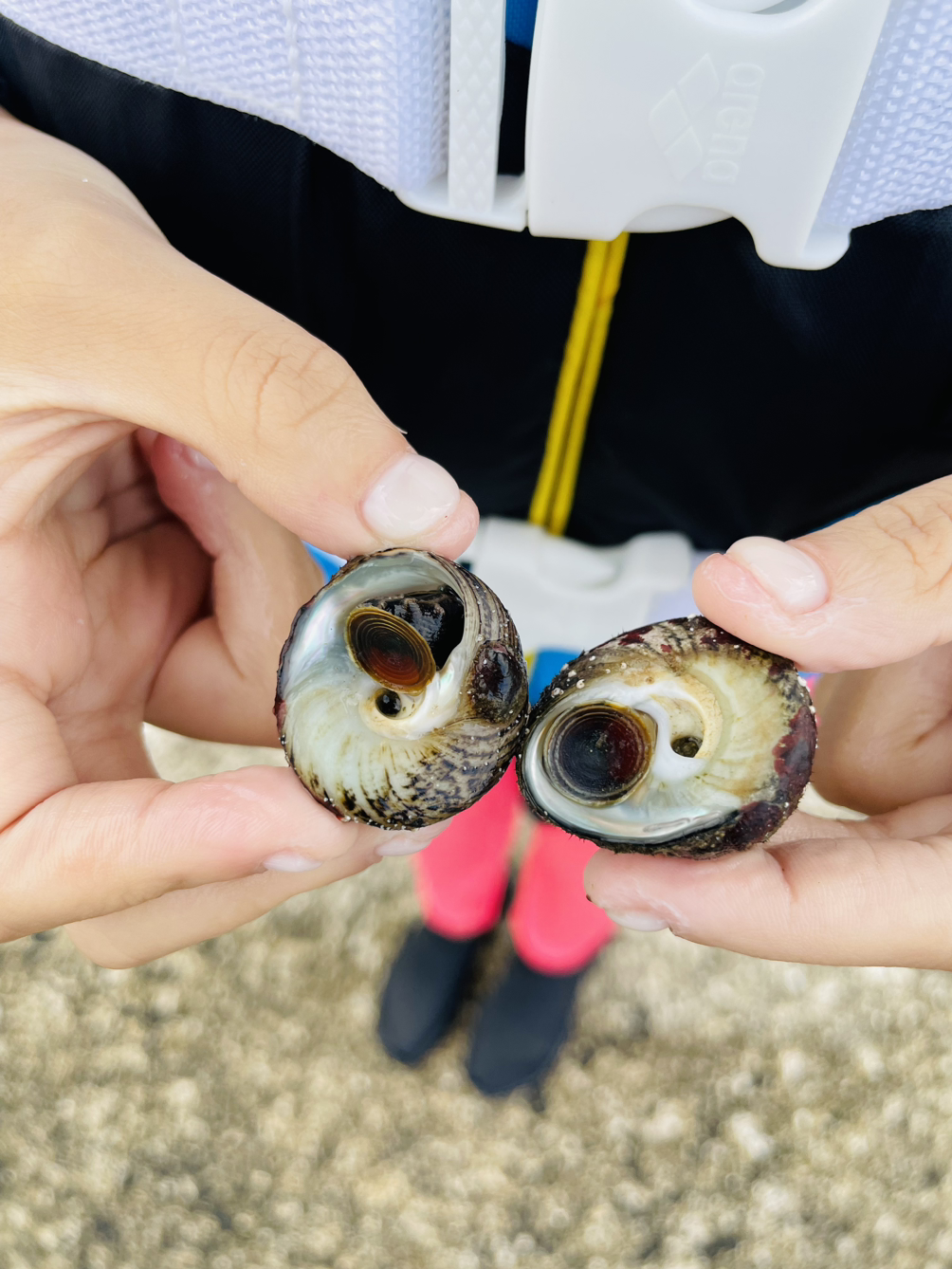 내 손의 반 밖에 안되는 작은 손을 가진 초콩이도 어느새 누나를 따라서 소라게를 채집해 오는 재미에 푹 빠졌다. 초콩이가 이 정도이니, 초롱이는 훨씬 더 재미있게 채집을 할 수 있겠지만 초롱이에게는 한 가지 약점이 있다. 바로 눈이 잘 안 보이는 것이다. 그 마음은 내가 충분히 알기에 초롱이가 얼마나 마음이 조급할지 누구보다 잘 알 것 같았다. 우선 채집대상을 물 위에서 찾아보고난 후에, 물안경을 쓰고 바로 타깃을 향해 손을 뻗어서 채집해서 나오는 초롱이의 얼굴에는 항상 눈부시게 밝은 미소가 가득했다.