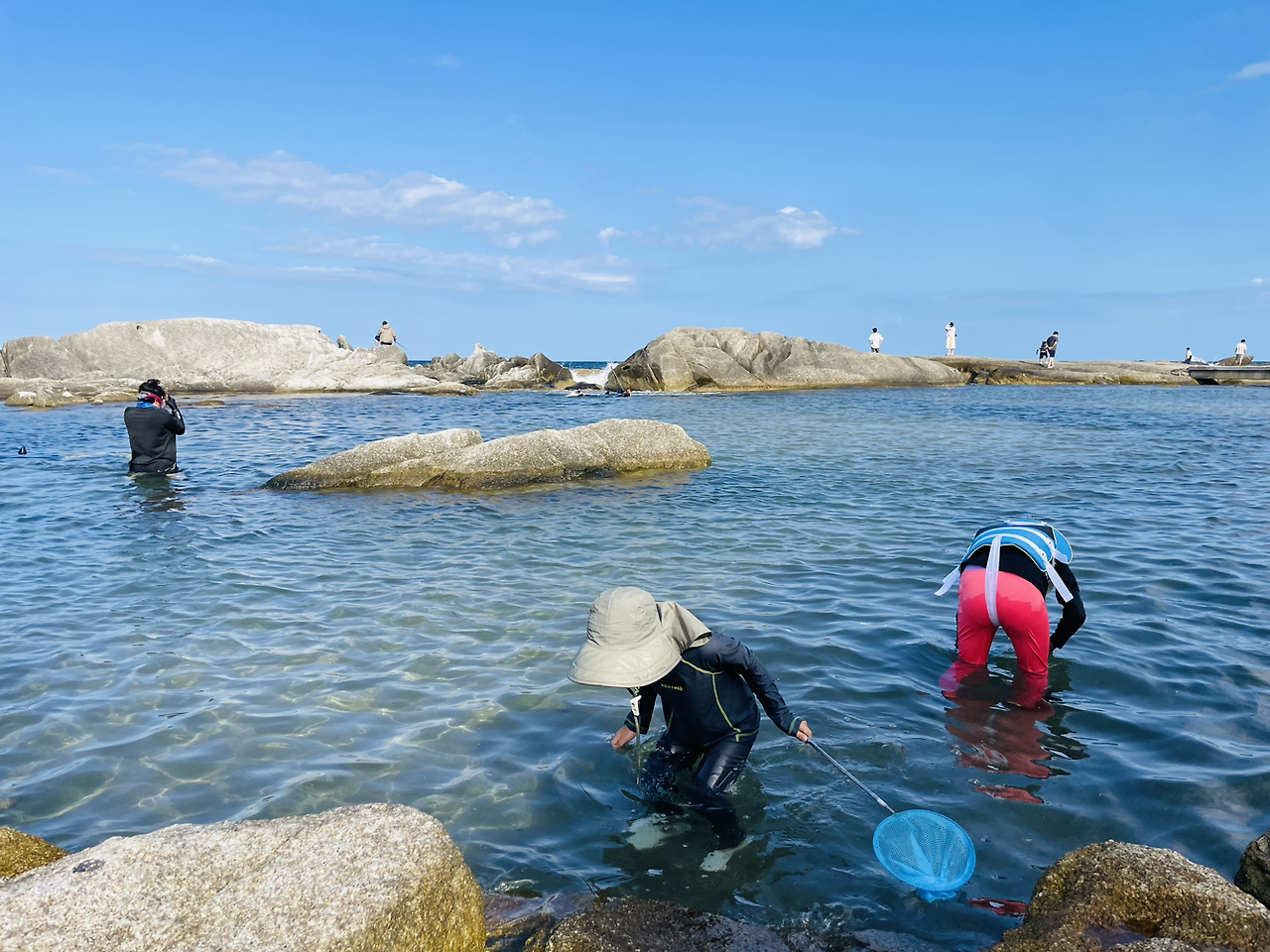 아이들은 그렇게 시간 가는 줄 모르고 1시간여를 신나게 채집놀이를 했다. 돌 가까운 곳에서는 작은 소라게와 고동을 따오고, 작은 물고기를 잡아오기도 했지만, 옆쪽의 다른 사람들은 제법 큰 소라 거북손까지 채집을 해오는 것을 보고 조금 부러운 듯했다.