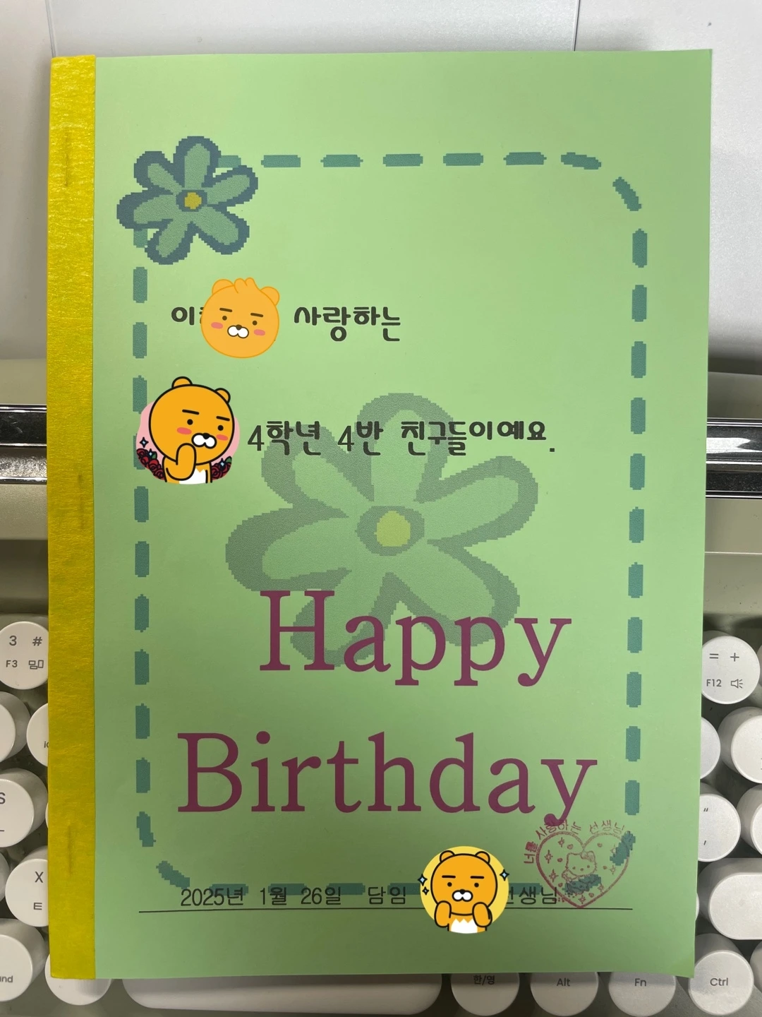 내년에 같은 반이 되었으면 좋겠다. 마지막으로 생일축하해.