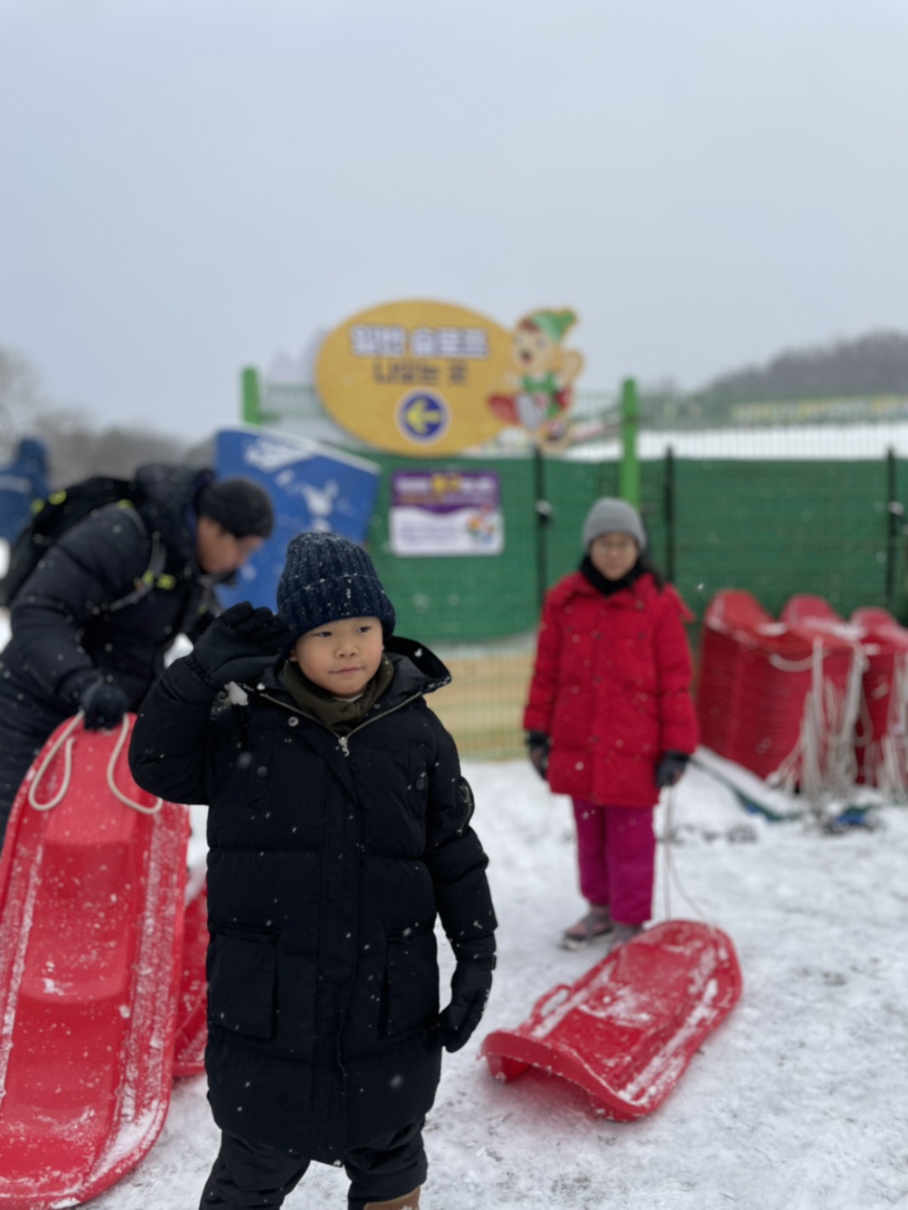 점심 이후 눈도 그치고 사람들이 모이자 우리는 다시 눈썰매장으로 가서 한두 번만 더 타고 집으로 가기로 했다. 사실 토요일이었다면 눈도 그쳤고 날이 춥지 않았기에 더 오래 놀다가 레이저쇼까지 보고 오고 싶었지만, 일요일은 아무래도 부담스러웠기 때문이다.