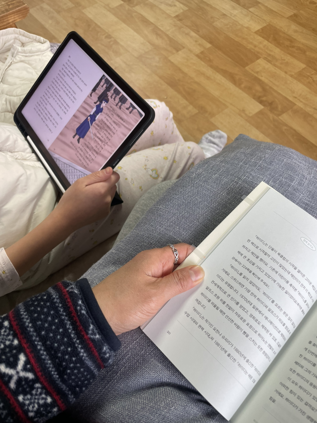 점심을 먹고 난 후, 나는 설거지까지 마치고 소파에 가져온 책 한 권을 들고 앉았다. 초롱이도 요즘 푹 빠져 있는 밀리의 소설을 보고 싶다며 내 옆에 패드를 가지고 와서 앉았고, 초파는 침대에 누워서 잠을 청하고 있었다.