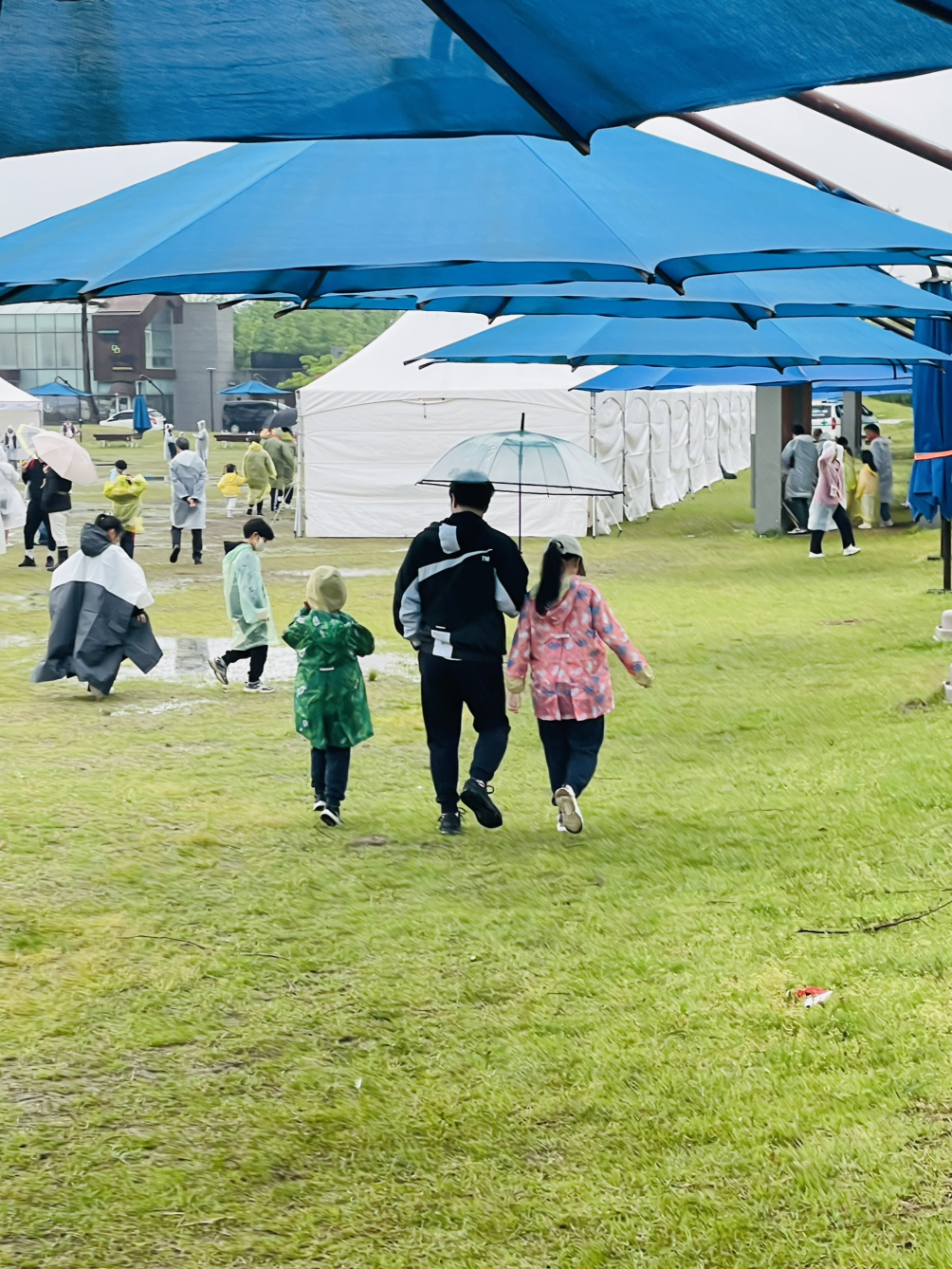 그렇게 세종시에 도착한 시간은 11시. 오다 말다 한 비는 이제는 그칠락 말락 해서 나와 아이들은 준비해 간 비옷을 입었다. 그냥 기념품만 받아서 올 생각에 도착한 곳이었는데, 생각보다 사람도 있었고 비가 그쳐가서 그런지 이런저런 행사를 하고 있었다.