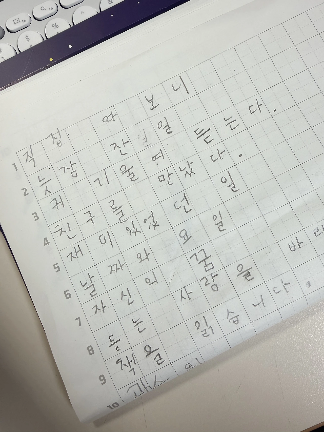 연휴가 지나고 학교에 가고 학원에 다녀온 둘째는 받아쓰기 연습 삼매경에 빠졌다. 연습 없이 처음 본 시험은 자세하게 말해주지 않는다며, 선생님은 친절하게 다 설명해 주는데 엄마는 왜 그렇게 말하냐며 입을 삐죽 내밀었지만, 두 번째 시험에서는 깔끔하게 쓴 글씨에 틀린 글씨도 감쪽같았다.
