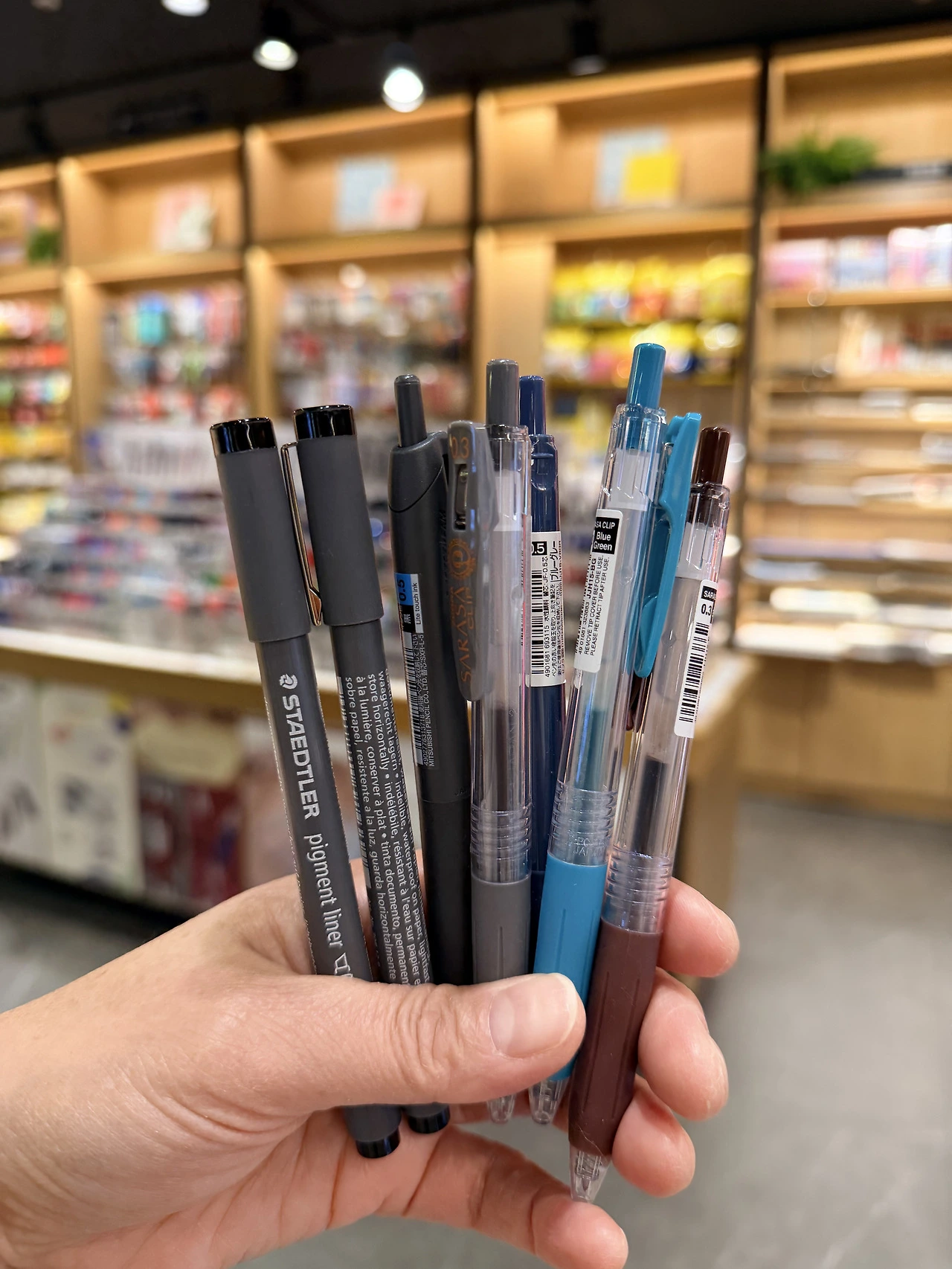그렇게 손에 하나씩 집다 보니 어느새 한가득 펜이 내 손에 담겼다.