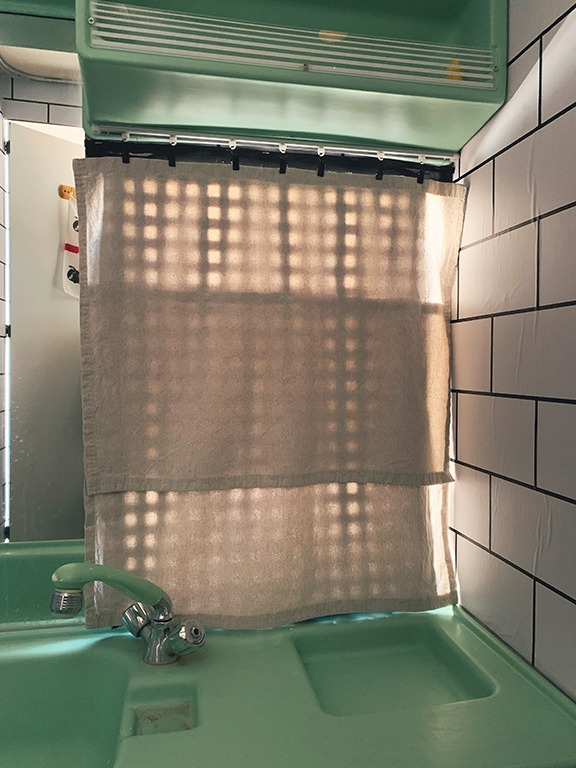 내친 김에 할인하는 예쁜 자투리 천도 몇 장 사다가 운전석 바로 뒤 비는 부분에도 작은 커튼을 새로 만들어 달았고, 너무 얇아 밤에 불을 켜면 안이 비쳐 보이던 화장실 커튼도 두 겹으로 고쳐 달았다. 평생 할 바느질을 1차 리모델링에서 다 한 줄 알았는데, 그만큼 또 더 하게 될 줄이야.