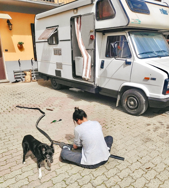 해가 바뀌어 2022년이 되었다. 시어머니가 아르헨티나에 가족을 보러 가셔서 4월 말까지 집에는 피노와 우리만 있게 됐다. 그동안 나는 이탈리아어 수업 A1을 수료하고 A2 수업을 듣게 되었고, 기말시험이 6월 둘째 주로 확정되어서 시험이 끝나면 바로 시칠리아로 떠나기로 계획을 세웠다. 우리는 날씨가 풀리자마자 긴 여정을 앞둔 캠핑카의 2차 보수에 돌입했다. 피노는 일을 마치고 돌아오면 늘 우리가 어려워하는 문제를 확인하고 해결해 주었다.