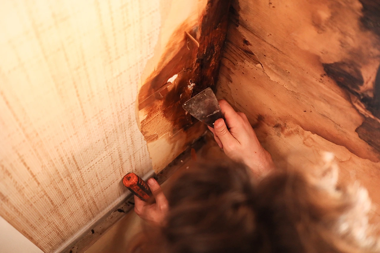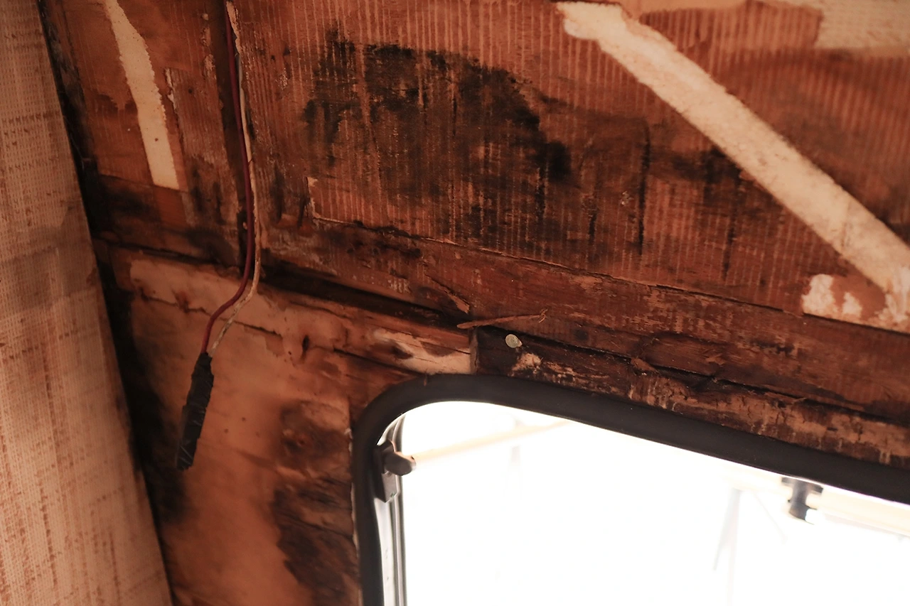 우리가 한 자잘한 작업들을 모두 나열할 수는 없지만, 벽 보수가 빠질 리 없다. 놀라울 것도 없이 뒤편 벽도 다 썩어 있었던 것이다. 남편에게 확인해 봤던 거 아니냐고 했더니 지난번에는 거기까지 할 시간도 여력도 없어 일부러 뜯어 보지 않았단다. 썩어 있을 게 분명해서. 그렇구나 허허.. 난 또 뒤는 괜찮은 줄 알았지.. 나무 패널과 벽지를 뜯어 보니 역시나 팍삭 썩은 벽이 드러났다.