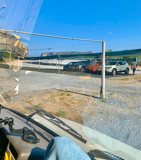 우리는 캠핑카로는 지나기 어려운 좁은 비포장 길을 힘들게 달려 아르코마뇨 해변 근처 유일한 주차장에 도착했다. 아르코마뇨 해변에 가려면 이곳에 주차를 하고 절벽에 설치된 계단을 올라 산길을 걷는 방법밖에 없었다. 주차장 입구에는 나이 든 사장님이 앉아 있었고, 우리가 가격을 묻자 5유로라고 했다. 그 정도면 괜찮다 생각한 우리는 5유로임을 다시금 확인하고 주차장 안으로 들어섰다.