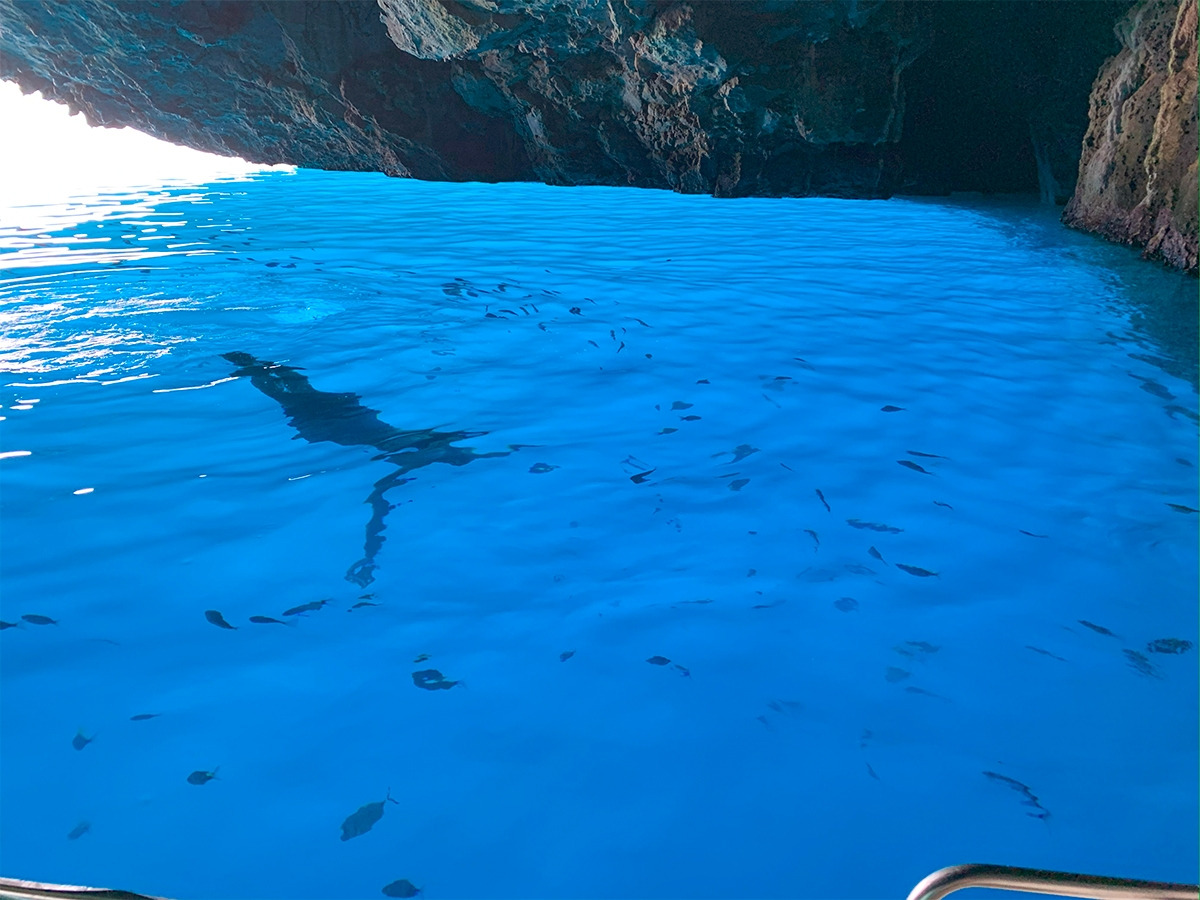 그렇게 둘러본 디노 섬의 동굴들은 정말이지 아름다워서 아르코마뇨 해변에 남은 미련이 씻은 듯이 날아갔다. 해변에서 가까운 사자 동굴(Grotta del Leone)의 바닷물은 영롱한 에메랄드빛, 먼 바다 쪽의 푸른 동굴(Grotta Azzurra)의 바닷물은 카프리 섬의 푸른 동굴처럼 짙은 푸른 색이어서 서로 다른 매력이 있었다. 두 곳 다 물빛이 너무 아름다워 하루 종일 바라볼 수도 있을 것 같았다. 한 시간이 쏜살같이 지나갔다.