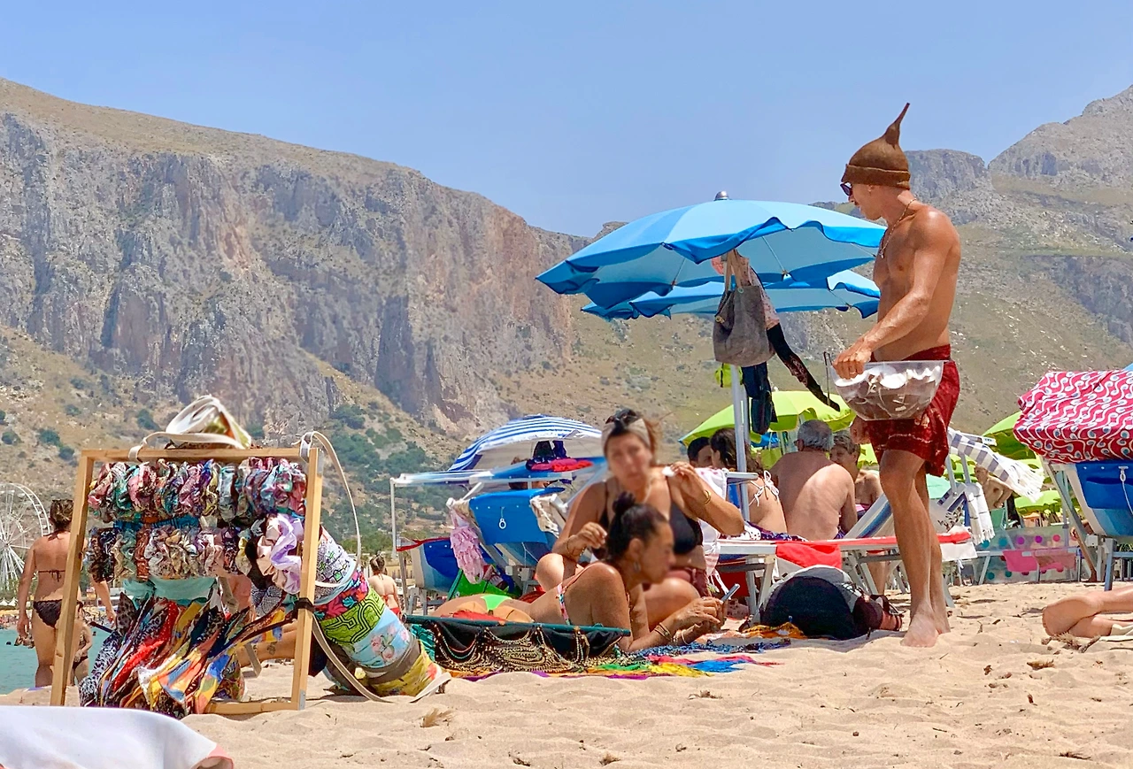 산 비토 로 카포의 해변은 멀리까지 걸어나가도 깊이가 허리 정도까지밖에 되지 않고 파도가 거의 없어 수영하기 좋았다. 해변에 누워서 바라보는 풍경도 아름답고, 해변이 넓고 산이 보여 거대한 자연의 품에 안겨 있는 느낌이었다. 사람이 많은데도 평화로웠다. 평온함에 살짝 잠이 들려던 찰나 어디선가 "Cocco bello~ Cocco bello~(콕코 벨로~)" 외치는 소리가 들렸다. 나라마다 해변에서 파는 특별한 먹거리가 있을 텐데, 이탈리아 해변은 바로 이것이다. 어느 해변에서나 "콕코 벨로~"를 외치는 소리를 들을 수 있다.