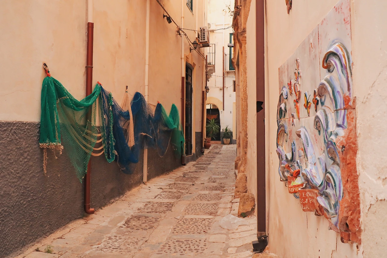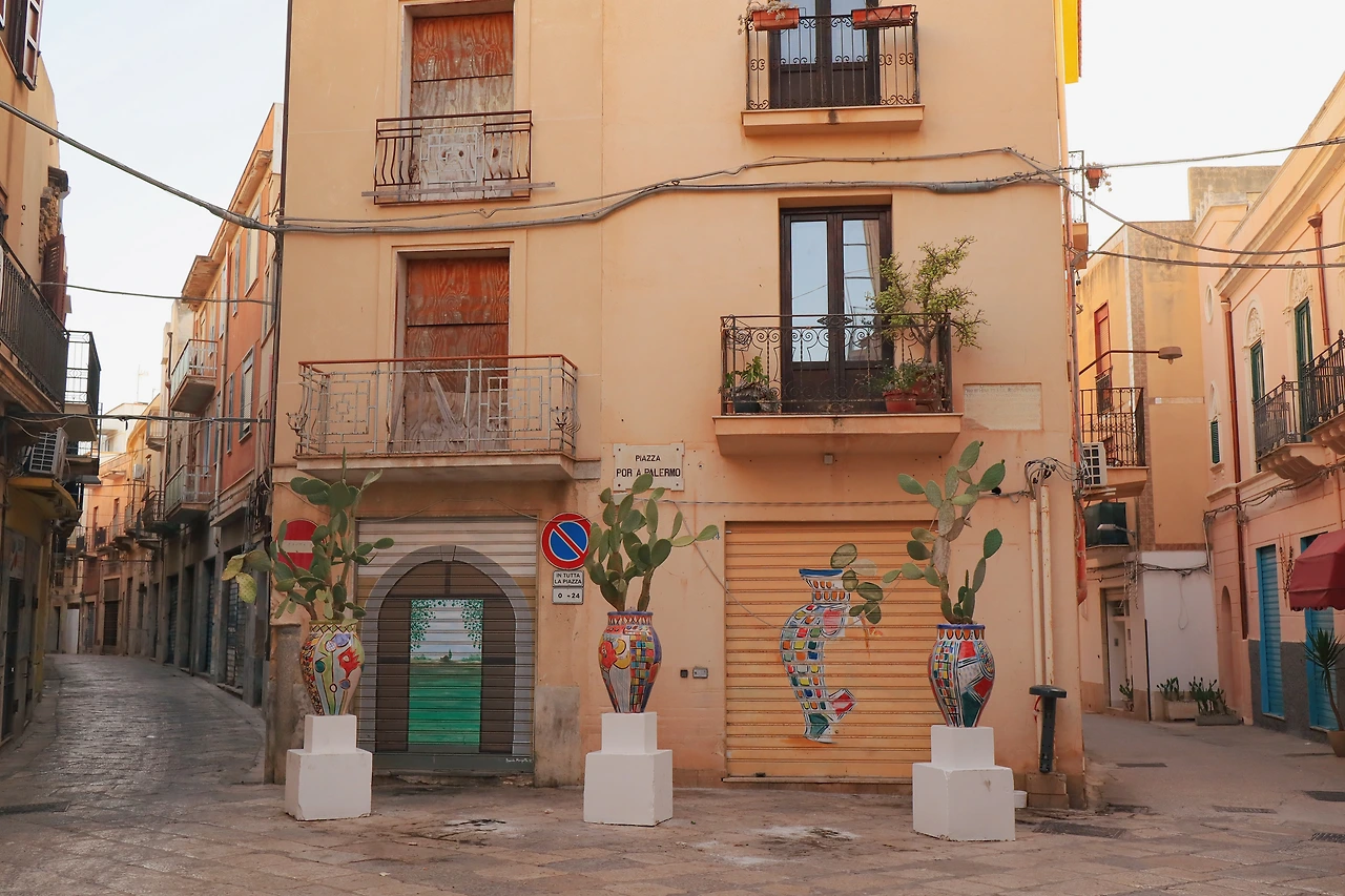시내에 내려 큰 길을 따라 걸어보니 일부러 구경할 것까지는 없는 평범한 소도시 같았는데, 아주 오래된 골목이 있다고 해서 찾아가 봤다. 도착해 보니 오래된 골목은 정말 그냥 오래된 골목이었다. 그런데 그 골목에서 이어지는 골목으로 깊이 들어가서 돌아다녀 보니 특색 있게 꾸며진 건물들이 나타났다. 시칠리아 특유의 감성으로 꾸민 골목을 구경하며 즐겁게 걸었다.