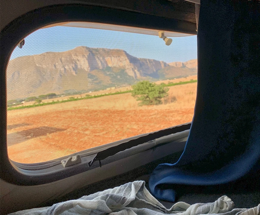 이때가 6월 말, 여름이 시작되어 낮에는 꽤 더웠지만 그래도 밤에는 선선했기 때문에 우리는 영문을 몰랐다. 뭔가 특별한 현상임이 분명한테 하필 인터넷이 안 돼서 알아볼 길은 없고.. 일단은 위험해 보이진 않아서 다시 잠을 청하고 다음 날 아침이 되었다. 그런데 아침이 되었는데도 바람의 강도가 조금 약해졌을 뿐 여전히 뜨뜻한 열기를 품은 바람이 계속해서 불어왔다. 황사 같은 황토색 먼지가 차체를 덮고 있었다. 안테나를 고치고 있긴 한 건지 여전히 인터넷이 먹통이라 이게 무슨 현상인지도, 언제까지 계속될지도 알 수 없었다. 어차피 떠나야 할 때이기도 해서 우리는 더 기다리지 않고 이곳을 떠나기로 했다.