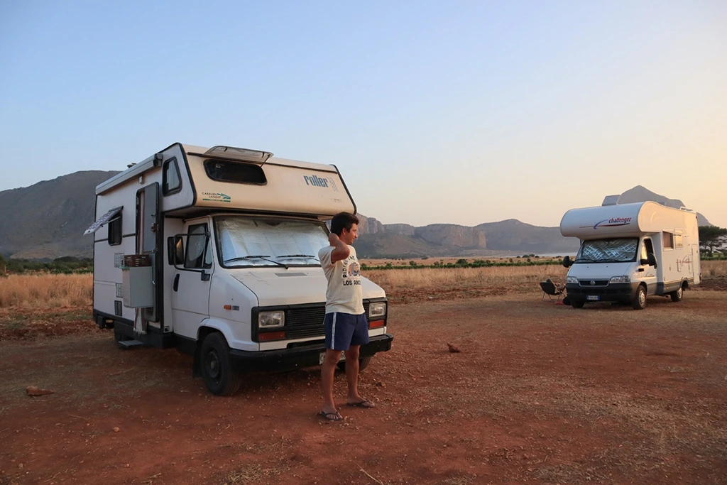 며칠 있어 보니 이곳은 떠나기가 아쉬울 정도로 매력이 넘치는 곳이었다. 비수기라 차가 별로 없어서 안 그래도 넓은 주차장은 더욱 쾌적하고 사방 어디를 둘러 보아도 광활한 자연이 펼쳐지고, 시원한 바닷바람이 불어왔다. 저녁에는 먼 바다에서부터 산과 들판을 물들이는 노을이 자연 속에서 캠핑하는 즐거움을 더해 주었다. 처음으로 캠핑카로 시칠리아까지 온 보람을 느낄 수 있었다.