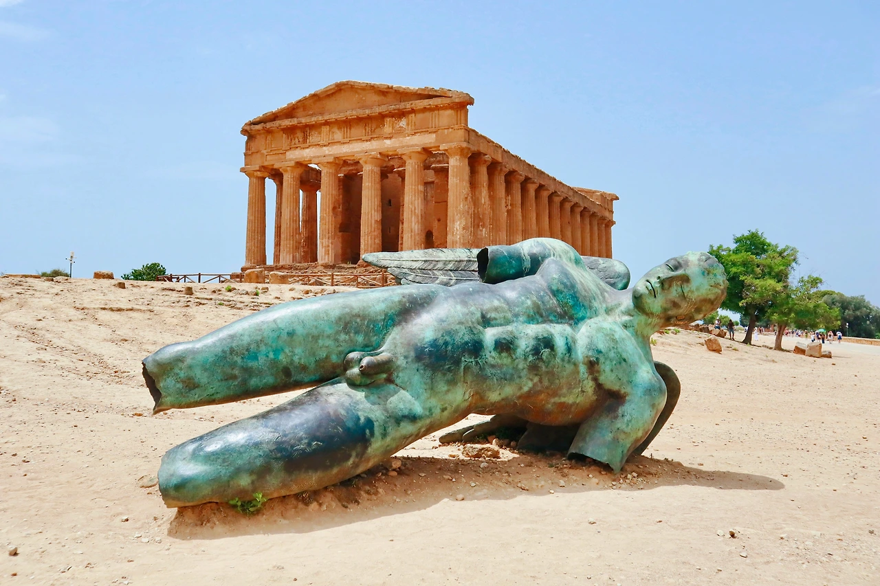 다음 날 우리는 아그리젠토로 갔다. 2,500년 전 고대 그리스 유적지로, 가장 오래된 유적은 아니지만 규모가 워낙 크고 이후 로마시대에도 사용된 덕분에 원형이 가장 잘 보존되어 있어 유명한 곳이다. 시칠리아에서 가장 유명한 관광지가 아닐까 싶다. 그 전에 갔던 셀리눈테가 변함없이 푸른 바다를 배경으로 폐허가 되어 버린 유적이 주는 심상이 있었다면, 아그리젠토는 까마득한 과거의 유적과 현재 사람들이 살아가는 터전이 겹쳐지는 풍경이 특별한 곳이었다. 그리고 현대의 폴란드 조각가 Igor Mitoraj의 작품도 인상적이다. 청동 이카루스 동상이 하늘에서 막 추락한 듯한 모습으로 신전을 배경으로 누워 있는데 실제로 보니 더 아름답고 신비롭고, 마치 그리스 신화 속에 들어와 있는 듯한 기분을 느낄 수 있었다.