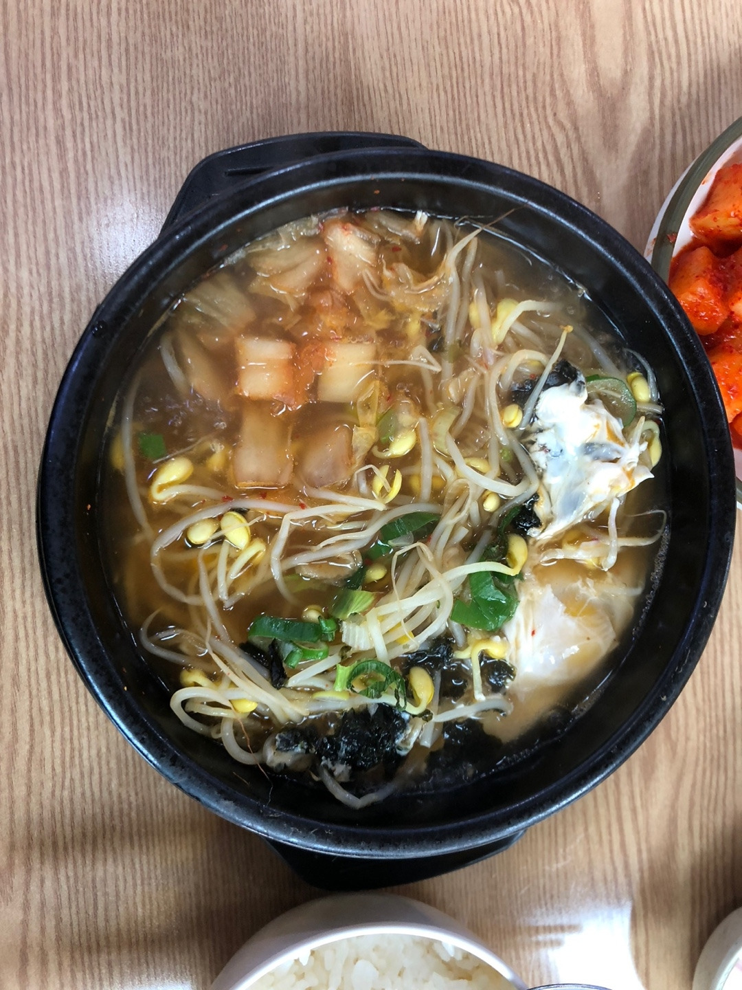 아이들의 하교 시간이 다가오자 어서 점심을 해결해야 한다는 마음에 급히 집을 나서 감기가 뚝 떨어지길 바라는 마음으로 오늘 점심은 뜨끈한 콩나물 해장국집을 찾았다.