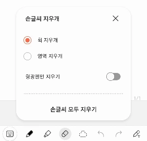 지우개는 획과 영역을 지우는 두 가지만 있는 줄 알았다. 손글씨 모두 지울 수도 있다니...... 울고 싶은 심정이었다.