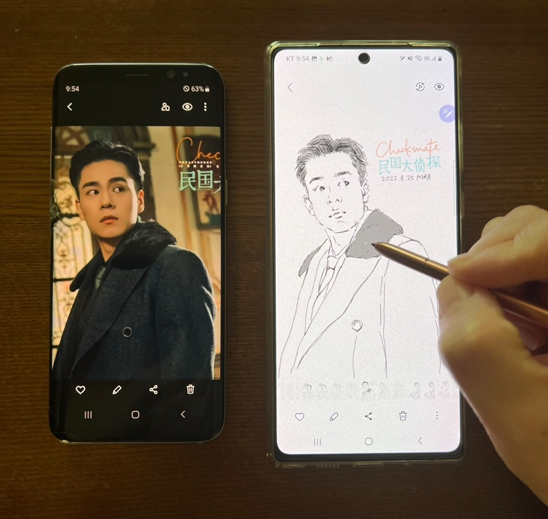 4. S8 갤러리 사진을 보고 Note20 Note를 열어서 그림을 그린다.