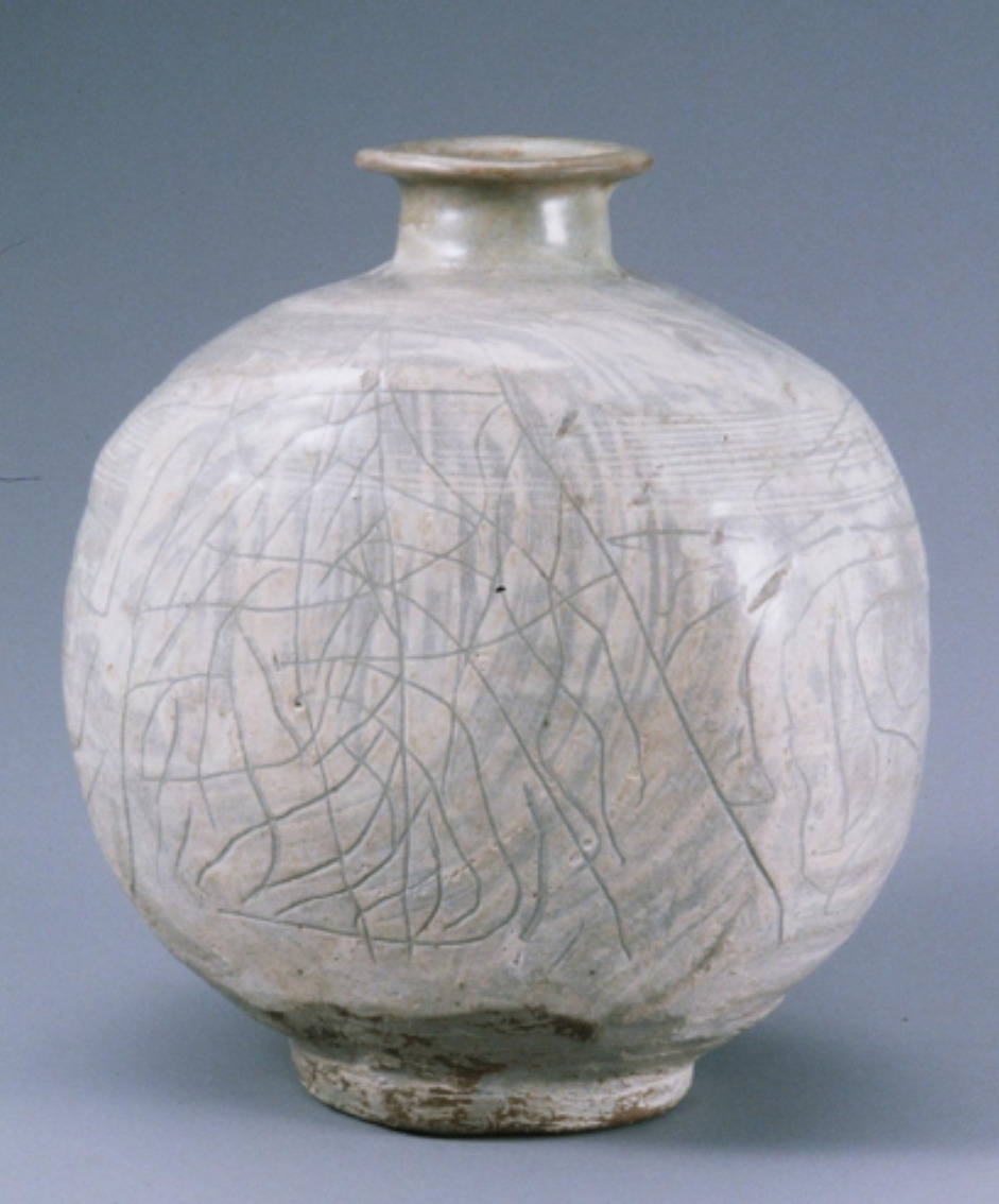 윤용이 선생님은 왼쪽 편병 무늬를 '술 한잔 걸치고 슥슥 그려 넣은 것 같다'라고 말씀하셨다. 왼쪽 도공은 도자기계의 뭉크일 수도 있겠다. 그 어떤 무늬보다 표현주의적이다.